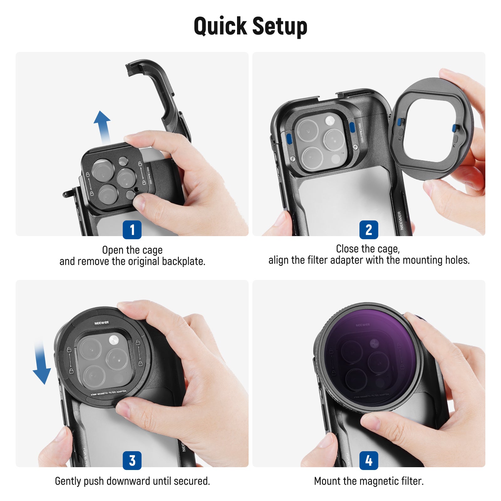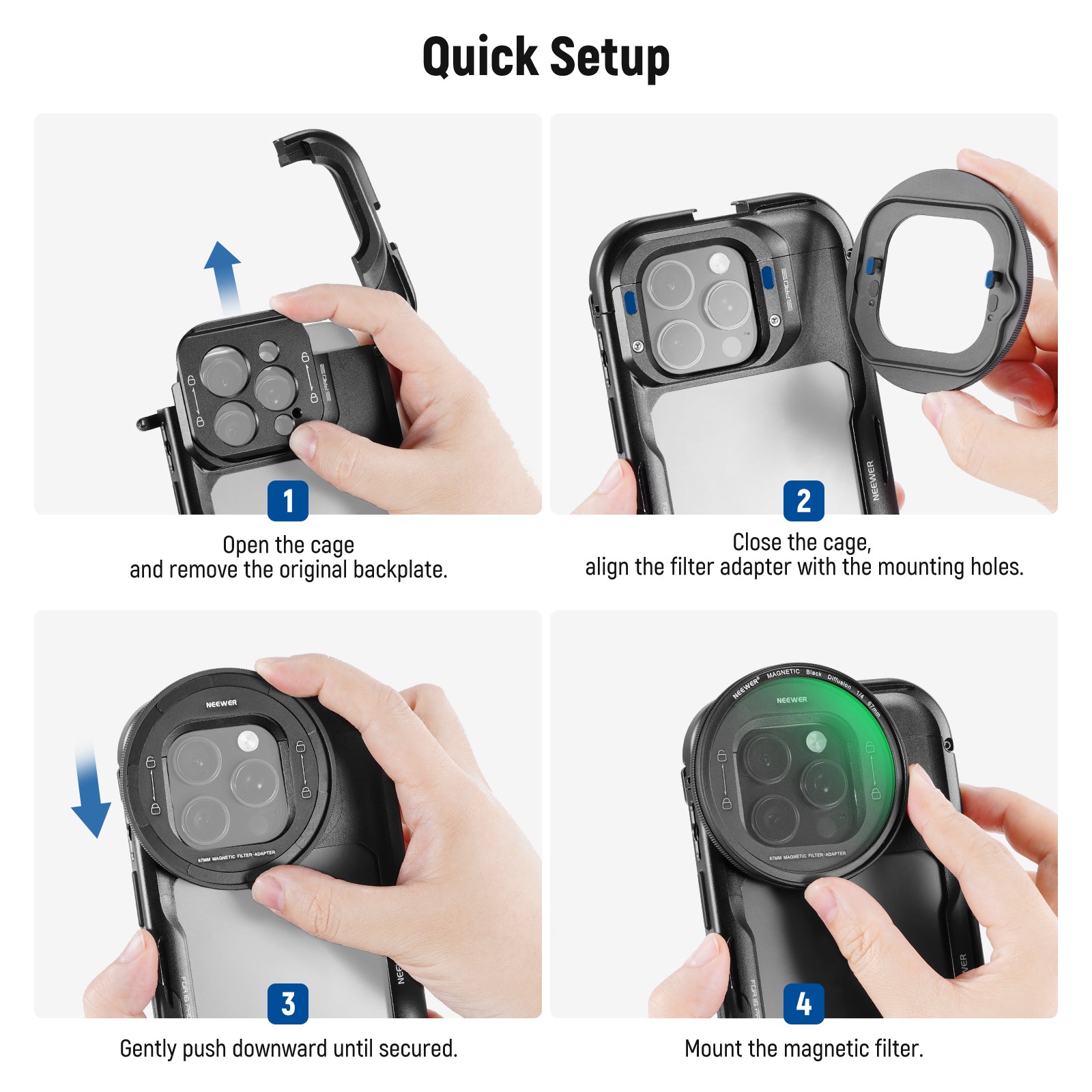 NEEWER offers a range of iPhone camera accessories, including iPhone cages, lenses, filters, tripods, and more. These iPhone camera attachments are designed to enhance your phone photography performance. Whether you're looking to improve stability while shooting or capture vivid, lifelike colors, you'll find the perfect iPhone camera accessories to meet your needs.