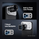 - T Mount Lens Backplate- Compatible with Moment T Series mobile lenses, including anamorphic, macro 10x, tele 58mm, wide 18mm, and fisheye 14mm lenses (Note: Lenses sold separately. Remove the mounted lens before detaching the backplate)