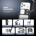 • 1 Click Installation & Full Access - Opened and locked via the side button, the phone cage needs no assembly and maintains full access to the camera, port, and buttons. A detachable rubber ensures seamless use of the Camera Control, and the hollow design is fully compatible with MagSafe wireless charging and magnetic accessories