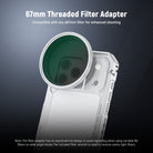 • 67mm Filter Adapter Ring - Connects 67mm UV, CPL, ND filters and black diffusion, graduated color, star, blue streak, light pollution reduction, and other effect filters for creative photos and videos without unwanted vignetting (filters sold separately). Ideal as content creator essential, video movie maker, and influencer must have photography, videography, filming equipment