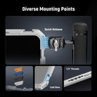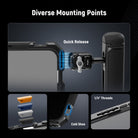 • Diverse Mounting Points - The cage features mounting slots for PA045/PA045E Quick Release Side Handle, 1/4" threads for T29/T30/T31 Tabletop Tripod, and cold shoe mounts for RGB62 Mini LED Video Light, CM31 Wireless Lavalier Microphone System, and more