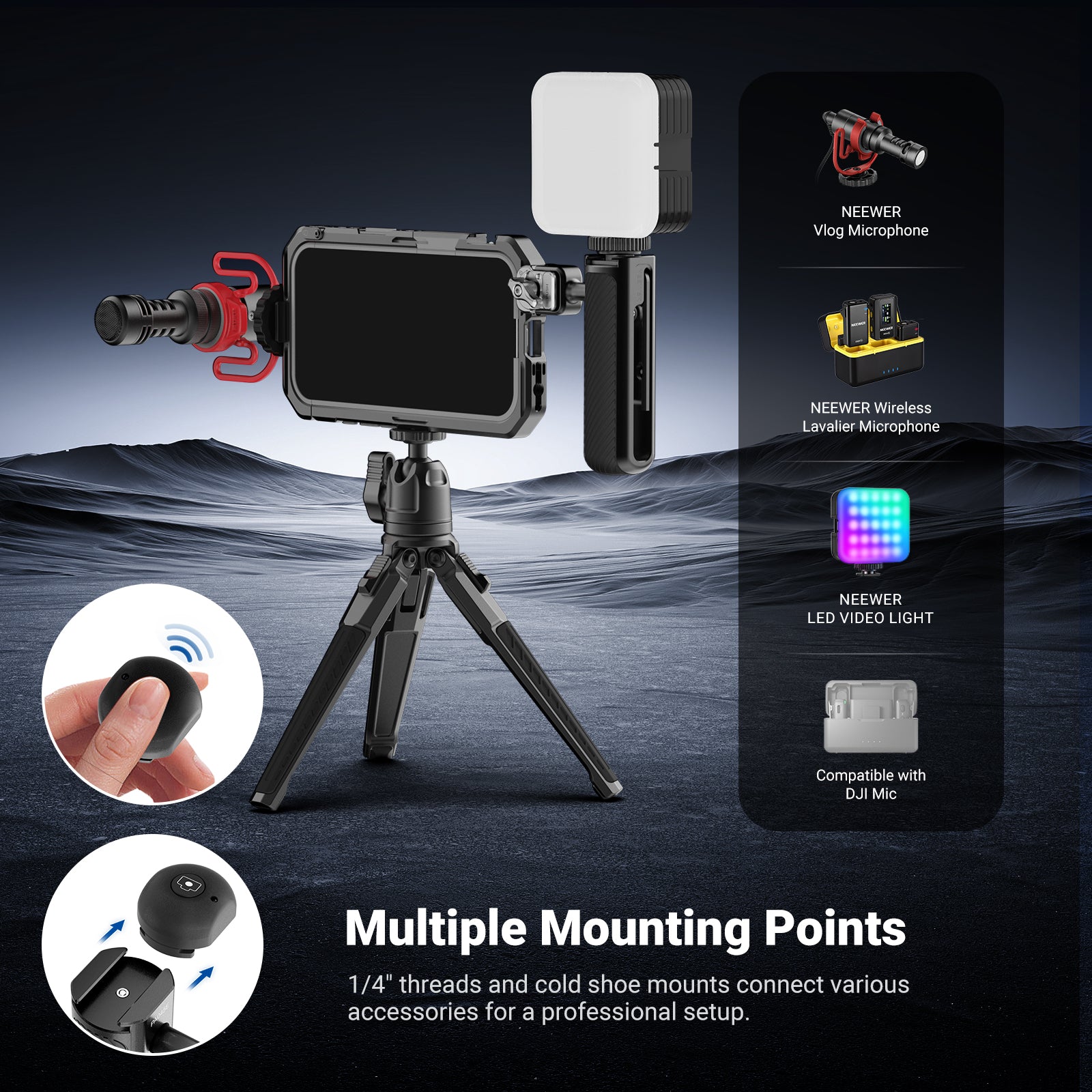 - Multiple Mounting Points- This cage compatible with iPhone 17 Pro/Pro Max features 1/4" threads and cold shoe mounts for tripods, handgrips, handle grips, LED lights, wireless mics, gimbal stabilizer holder equipment for phone camera video recording, plus other content creator essentials, influencer must haves, and mobile photography and filming accessories