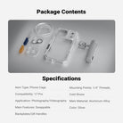 - 3 Interchangeable Backplates- With a 67mm filter ring, 17mm threaded phone lens backplate, and T mount lens backplate (compatible with Moment) for creative shots. Note: Open top bracket before mounting backplates. Filters and lenses not included