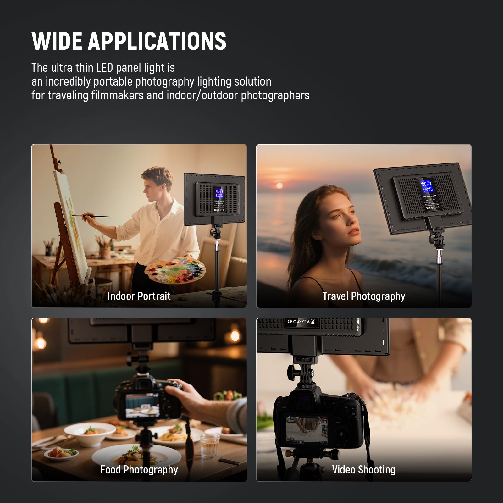 - Bi Color LED Video Light- With 192 warm yellow & cool white LEDs, the NL-192B delivers up to 2400lx/0.5m, with 3200K-5600K for warm & cool tones, 0-100% dimming range, and CRI97+ for high color accuracy. A portable soft key or fill panel light for portrait photography, YouTube/TikTok filming, studio photoshoot, social media live streaming, interviews, barber and more, making it an essential and must have lighting equipment for content creators, influencers, live streamers, and makeup artists