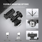 • Efficient Heat Dissipation- Densely arranged ventilation holes on the back panel and around the edges ensure efficient heat dissipation, quickly cooling the light after extended use. This helps prolong the lifespan of the equipment and maintain optimal performance. The light features a standard cold shoe and a 1/4" threaded hole for secure mounting on a camcorder, tripod, light stand or other photography accessories