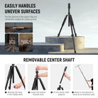 - Stable Tripod Base of Adjustable Legs- The two section telescopic legs allow for 3 unfolding angles, easy to spread and secure through the snap design. Spread out the legs until the center column touches the ground, and the angle reaches its maximum for enhanced stability of the stand