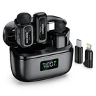 • Clip On Lav Wireless Microphone- Compact like earbuds, this small lavalier mic system includes a little plug & play USB C receiver (RX; 0.1oz/3g), two transmitters (TX; 0.2oz/6g each), and a charging case. One tiny adapter compatible with older iPhone iPad for vlog/content vlogging, one external adapter compatible with iPhone 17 16 15 Pro Max Mac Android phone tablet computer laptop. Not compatible with GoPro