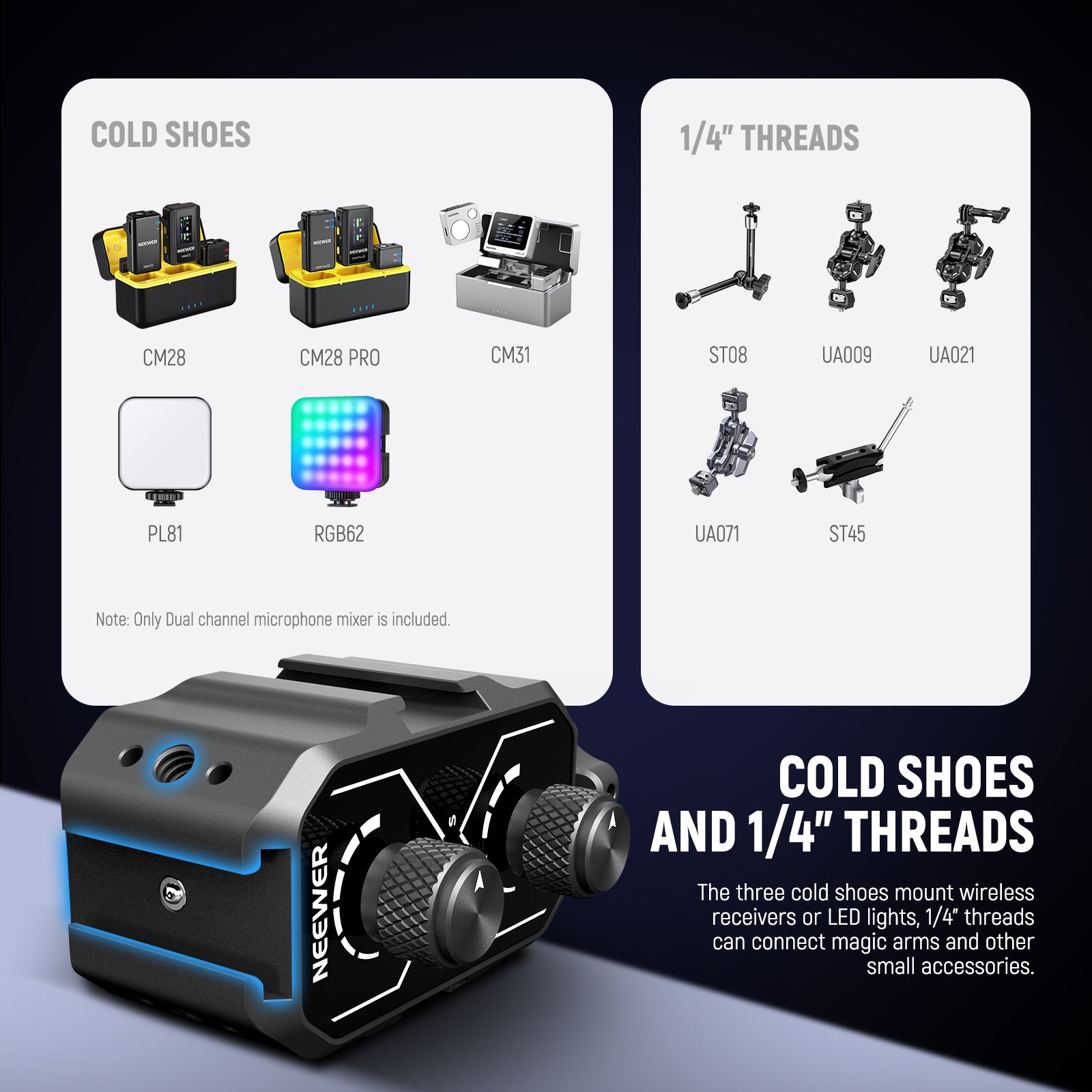 NEEWER microphones and accessories can meet your needs, including live streaming, video recording, gaming broadcasts, and more. Our collection includes wireless Lavalier microphones, gaming mics, microphone booms, and other options. Compact and easy to store, these microphones and accessories are also highly portable, making them perfect for outdoor videography.