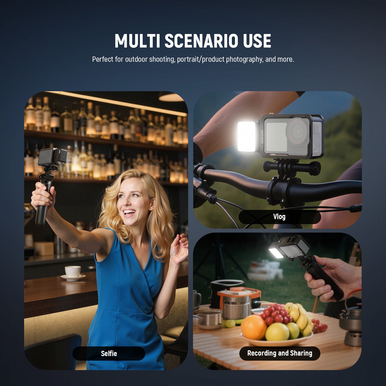 - Introducing NEEWER BASICS- Simple and practical, NEEWER BASICS is an economical product line that focuses on essential functions and designs, without unnecessary extras and materials. NEEWER M20 is a small, lightweight LED fill light for photography and video, featuring 20 LEDs to provide ample brightness for vlogs, selfies, videos, etc. Compatible with DJI OSMO ACTION 3/4/5 PRO camera cage accessories & for NEEWER AC009 PRO Cage, it is an ideal lighting attachment for streamlined setups