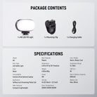 - Built in 600mAh Battery- Equipped with a built in 600mAh rechargeable battery, this LED phone film light provides up to 80 minutes of continuous lighting at full brightness. Easily recharge it via the included USB C cable using a portable charger or any other USB power source