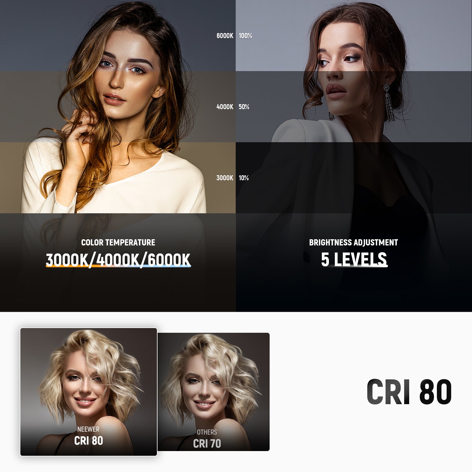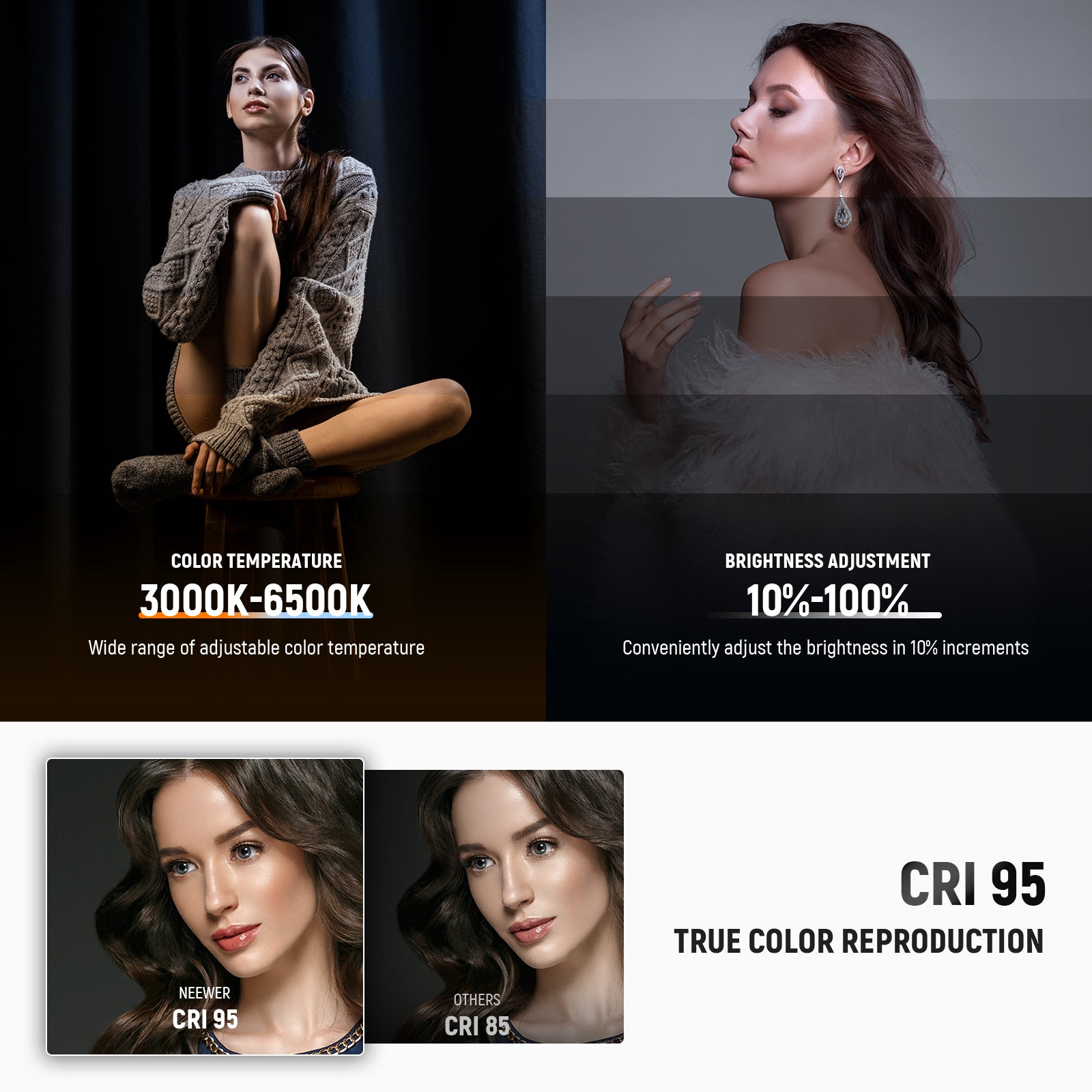 NEEWER offers a variety of mini lights, including small LED lights, phone selfie lights, handheld light sticks, and more. These compact lights are thoughtfully designed to meet the essential needs of most users, providing practical functionality without the added expense of over-engineered designs or premium materials. Lightweight and highly portable, these mini photography lights are perfect for on-the-go use. Choose a reliable mini light to elevate your photography with ease.