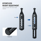 - One Button Press for Height Adjustment- The mini tripod features a hidden telescopic design that extends its legs 0.8"/2cm more for creative possibilities. With a simple button press, you can pull out the second section legs, elevating the tabletop tripod or extending the selfie stick to capture more satisfying shots. The non skid rubber feet provide a secure grip on any surface for stable shooting
