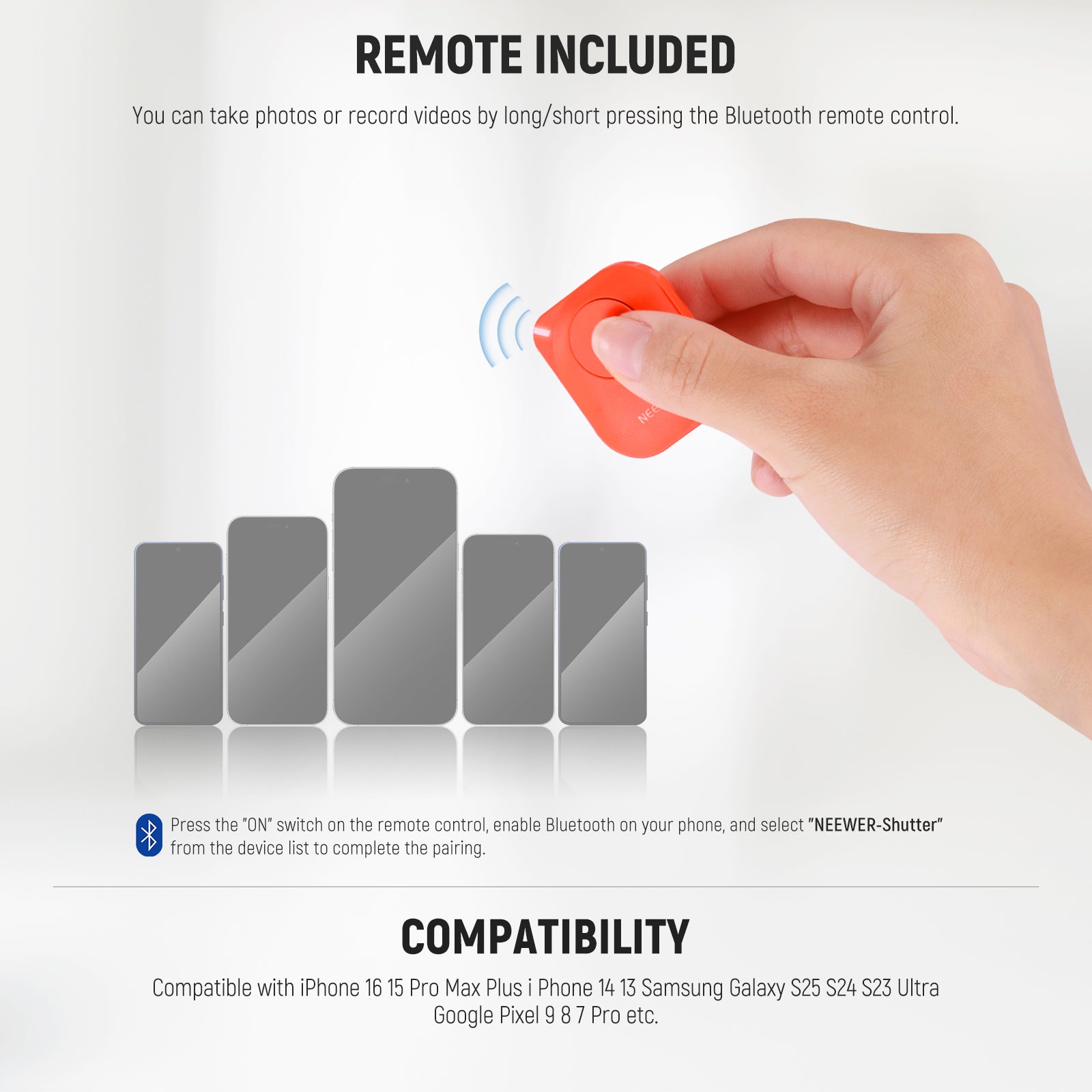 • Lightweight & Portable- Just 13.5oz/384g and folding down to 12.6"/32cm, the handheld tripod stand selfie stick with phone holder compatible with iPhone and Android is easy to carry for outdoor creation or travel filming. Essential photography gear, must have phone camera accessories for content creators and influencers. A Bluetooth shutter release lets you take shots from up to 33ft/10m away in unobstructed areas
