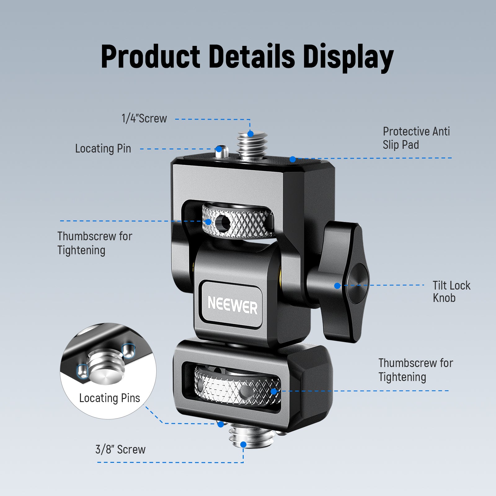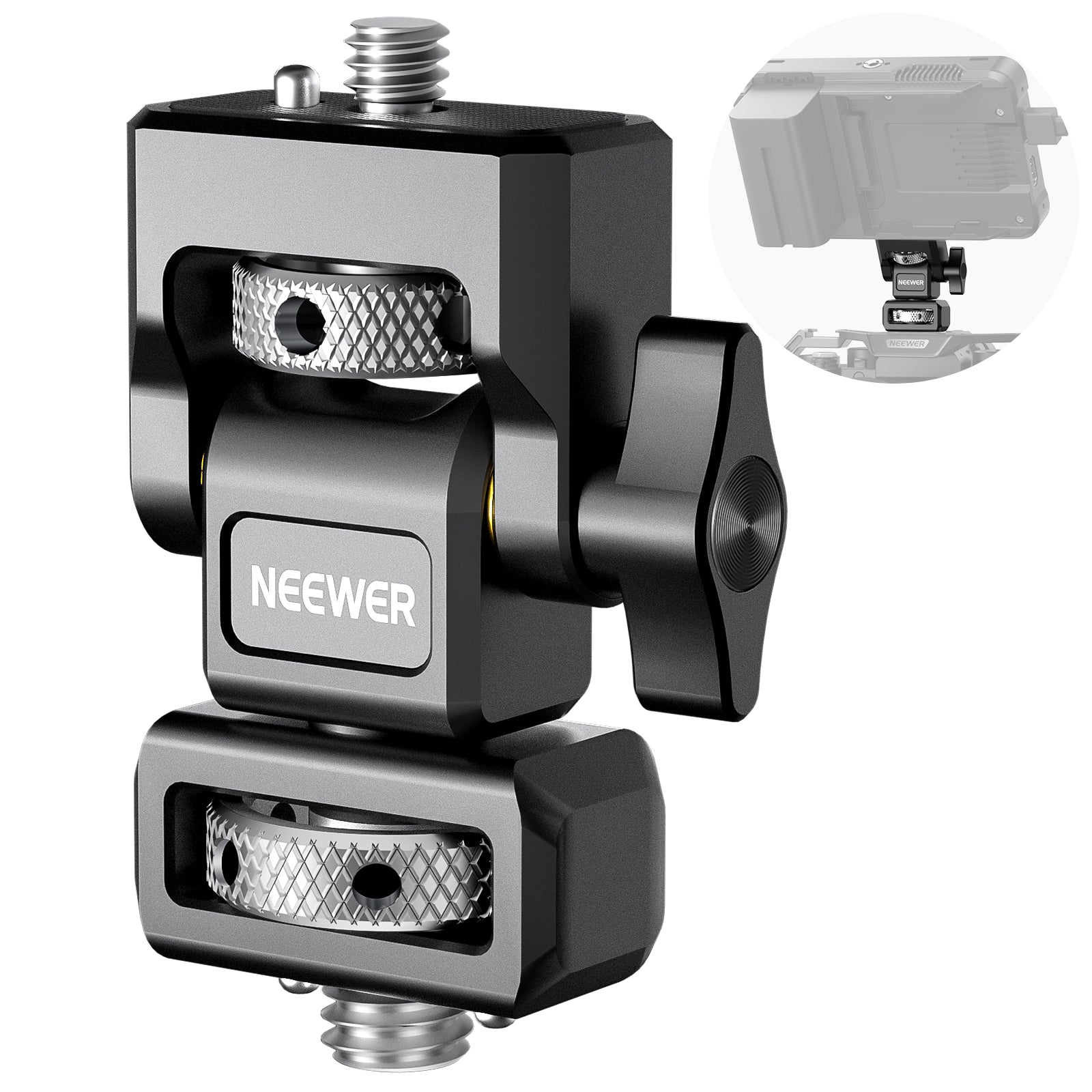 - Dual Anti Twist Design- Top 1/4" screw with retracting anti twist locating pin and nonslip silicone pad securely lock NEEWER F100 F200 F400 PRO F500 and other monitors (compatible with Atomos Ninja V Ninja V+). Plus, the knurled thumbscrew allows quick hand fixation, and slots with included L shaped hex key provide added security for retightening