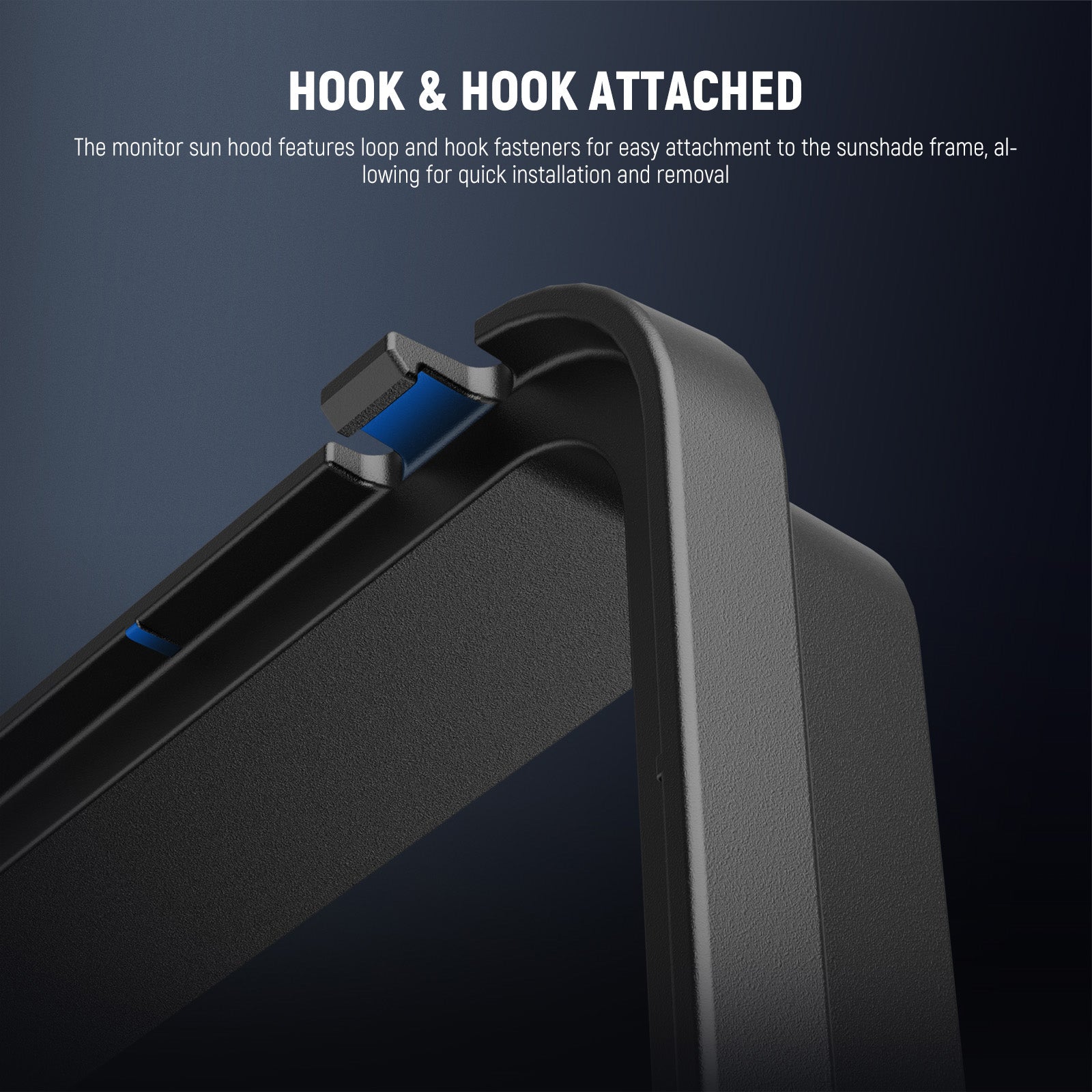 • Hook & Hook Attached- The monitor sun hood features loop and hook fasteners for easy attachment to the sunshade frame, allowing for quick installation and removal