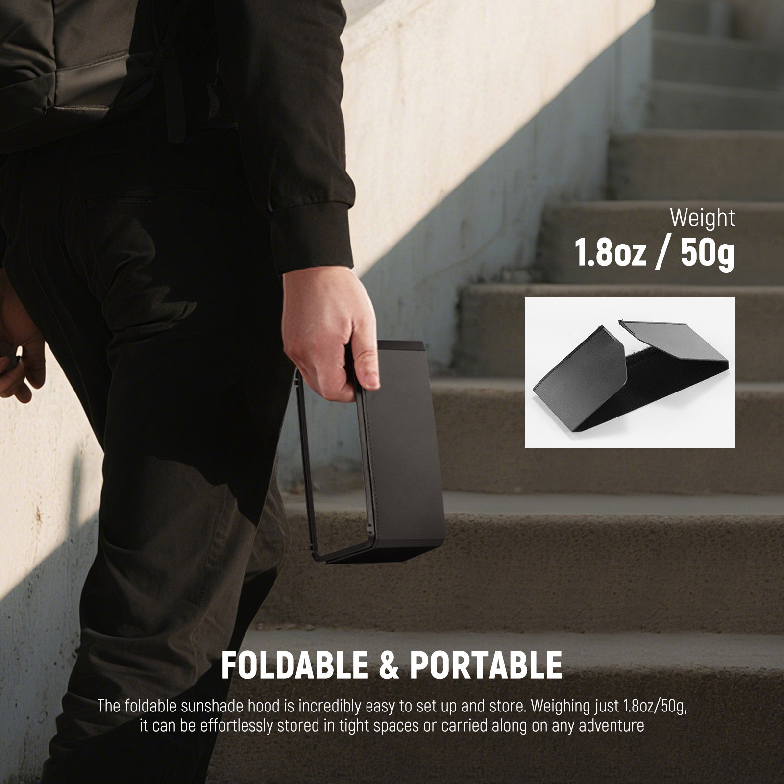 • Foldable & Portable- The foldable sunshade hood is incredibly easy to set up and store. Weighing just 1.8oz/50g, it can be effortlessly stored in tight spaces or carried along on any adventure