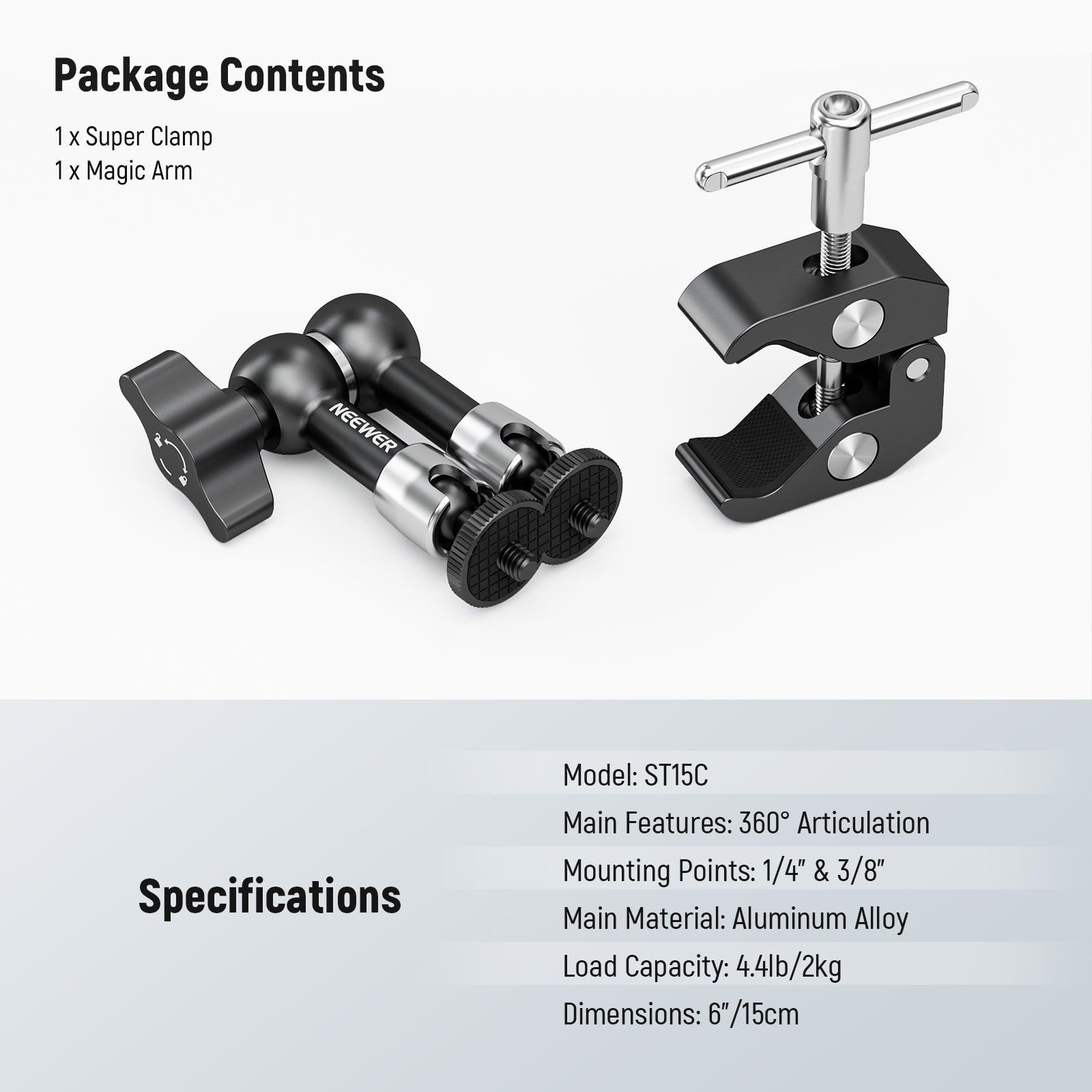 NEEWER ST15C/ST25C Super Clamp with Magic Arm Kit