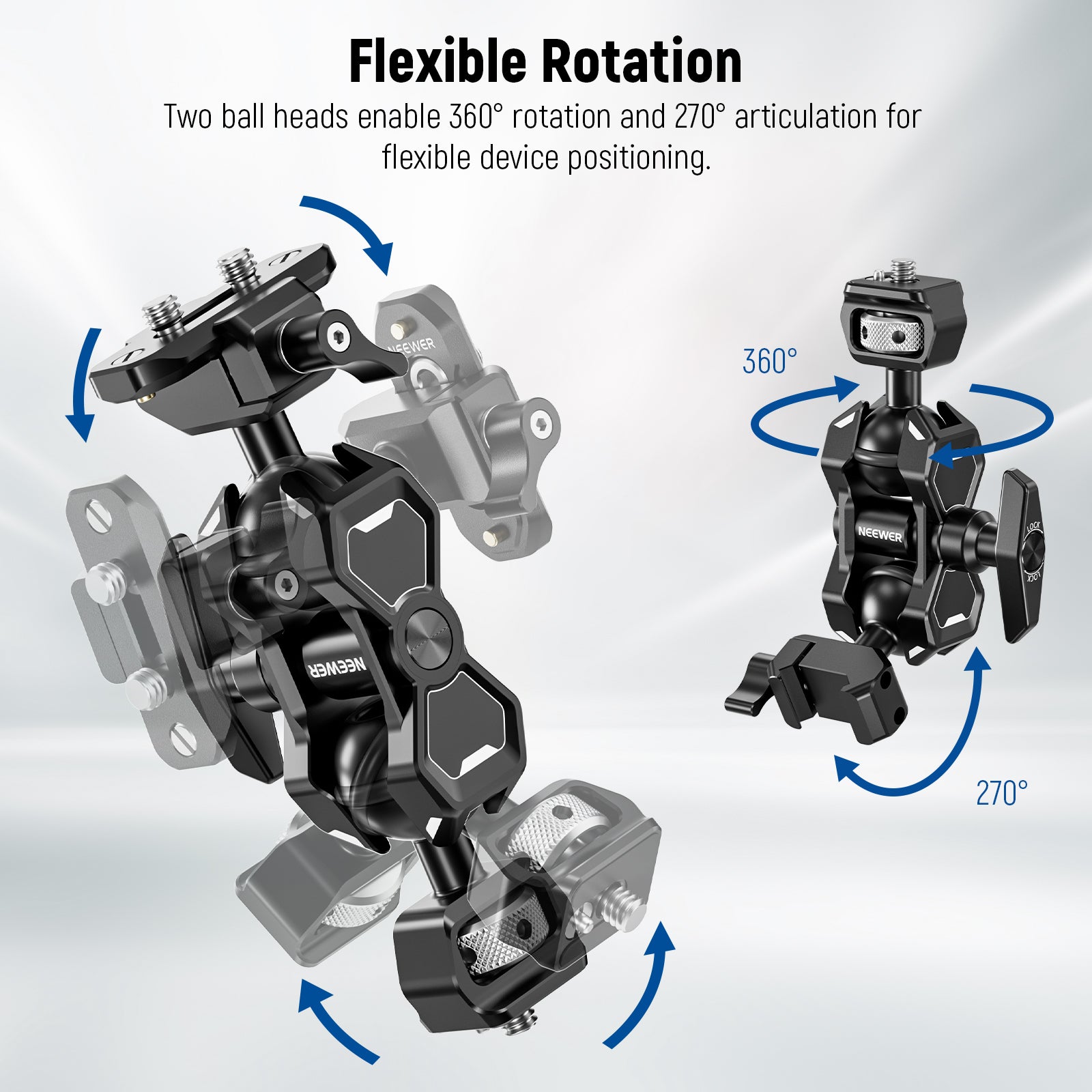 • 360° Rotation & 270° Tilt- Two ball heads enable 360° rotation and 270° articulating movements for flexible device positioning. Rubber rings increase friction and stability