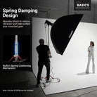 - Spring Cushioned & Foldable- The built in spring loaded mechanism absorbs impact from sudden drops, helping protect your device from damage. The portable stand features a foldable wheeled base and can be collapsed to 3.9 ft (120 cm) for convenient storage and transport