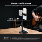 • Phone Stand for Desk- The ergonomic desktop cell phone holder adjusts up to 3.1" (8 cm) in height, and features two grooves for horizontal phone positioning, offering comfortable angles for video calls, live streaming, and content creation