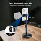 • Adjustable & Flexible- The phone mount allows for 360° rotation and 90° tilt, ideal cell phone holder as content creator essential influencer must have photography accessories, and home/office/bed/bedside desk decor stuff for men and women