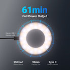 • Rechargeable- With a built in 350mAh battery, the small circle halo ring light lasts up to 61min at full brightness, providing continuous lighting for phone pictures and video recording