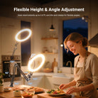 • Flexible Height & Angle Adjustment- The circle ring light with articulating desk stand mount extends up to 3.56ft, and tilts and rotates for flexible angles, for desktops up to 2.16" thick. Ideal phone camera overhead lighting for recording, filming, video calls, podcast, social media films, makeup, etc.