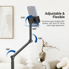 - Adjustable & Flexible- The 360-degree rotating cellphone holder mount stand for filming or video recording enables 85° and 270° tilt separately for the boom arm and your phone, ideal as content creator essentials and influencer must haves
