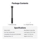 - 1/4" Bottom Thread- The gimbal extension pole features a 1/4"-20 screw hole for mounting on a mini desktop tripod for more versatile use