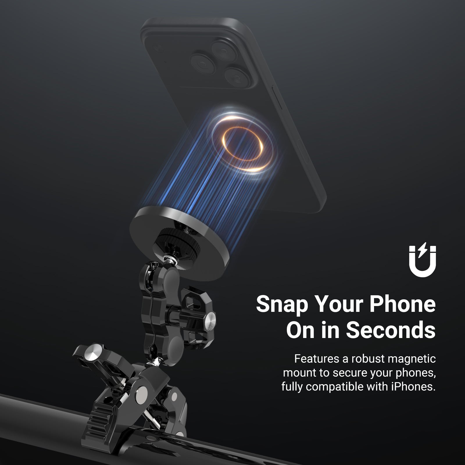 - Snap Your Phone On in Seconds- Our grip on desk and stand pole clamp with strong magnetic mount is compatible with MagSafe iPhone Mag Safe i Phone 17 16 Pro Max 16e 15 14 13 12 series, convenient cell phone holder for men women as phone camera selfies, desktop filming and video recording accessories