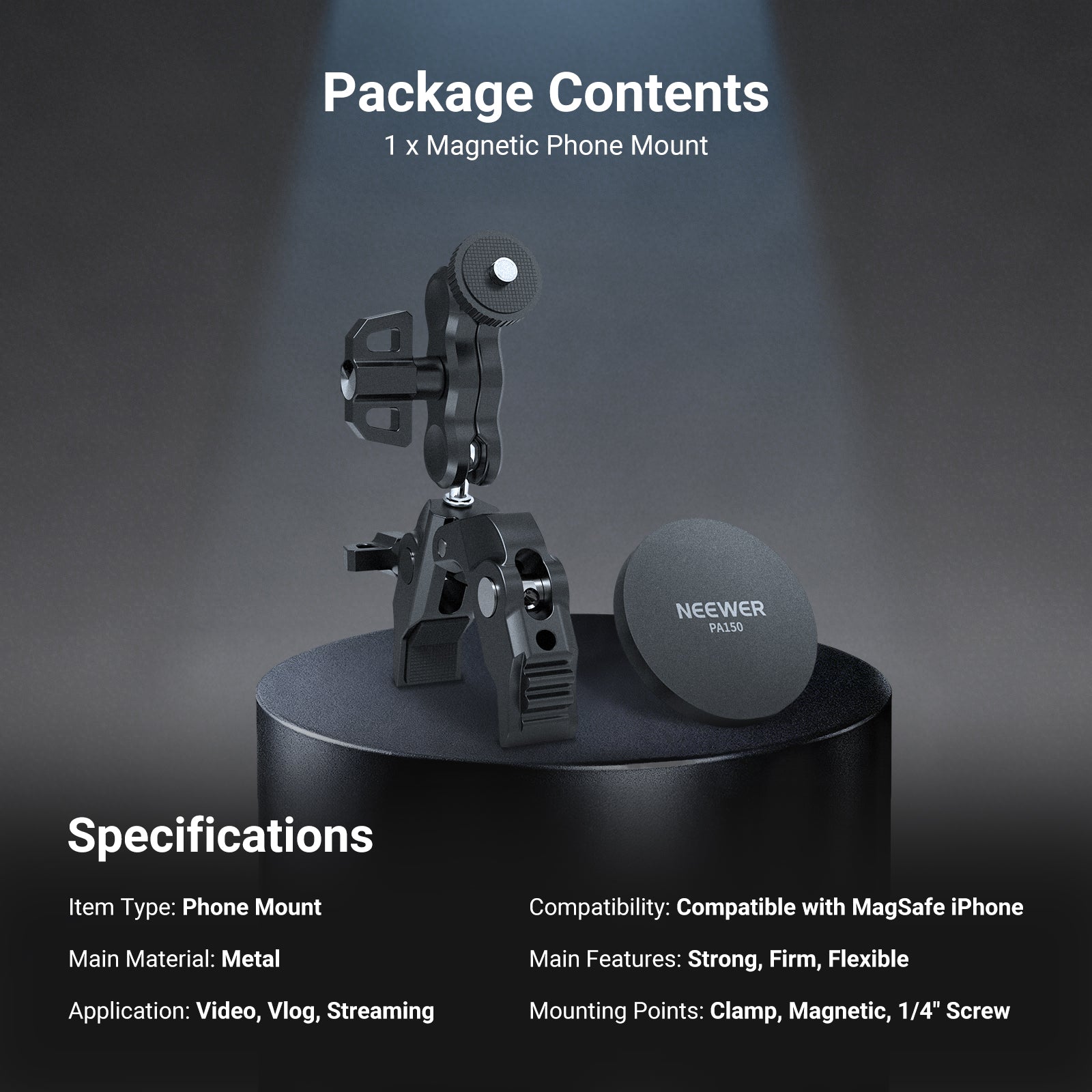 NEEWER PA150 Magnetic Phone Mount with Super Clamp