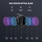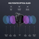 - Multicoated Optical Glass- Optical glass with multilayer, dual-sided coatings ensures clear footage while resisting water, fingerprints, and scratches. A cleaning cloth is included for daily care