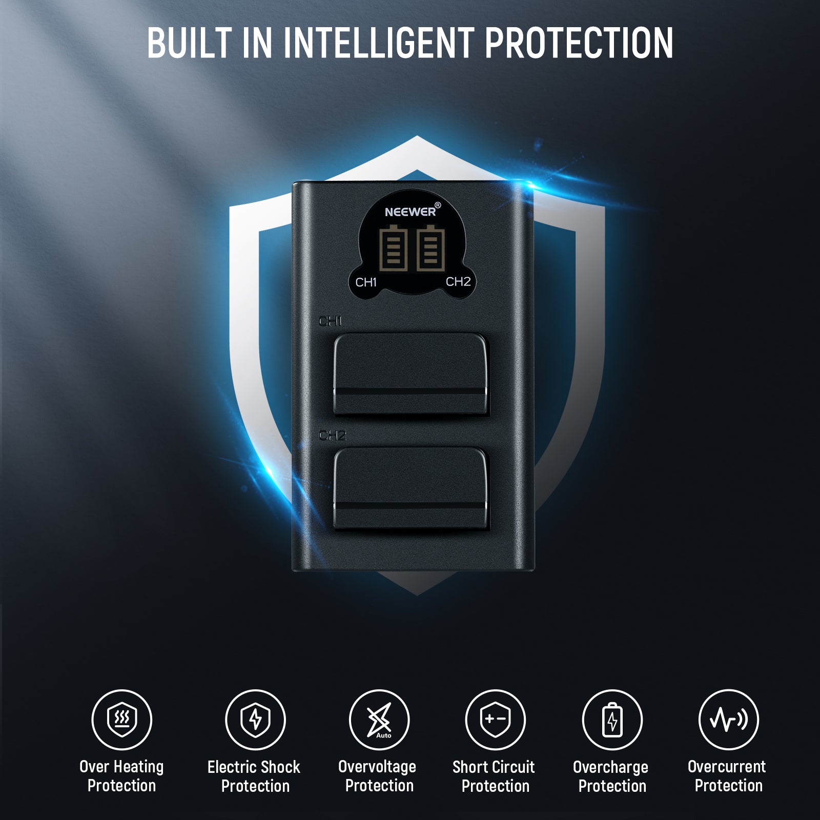 • LCD Display & Quick Charging- Featuring an intelligent LCD display that shows the current charging status in real time, this dual charger has a maximum output of 8.7V/1x 700mA or 2 x 500mA, you can charge two EN-EL25 batteries simultaneously in as little as 3 hours