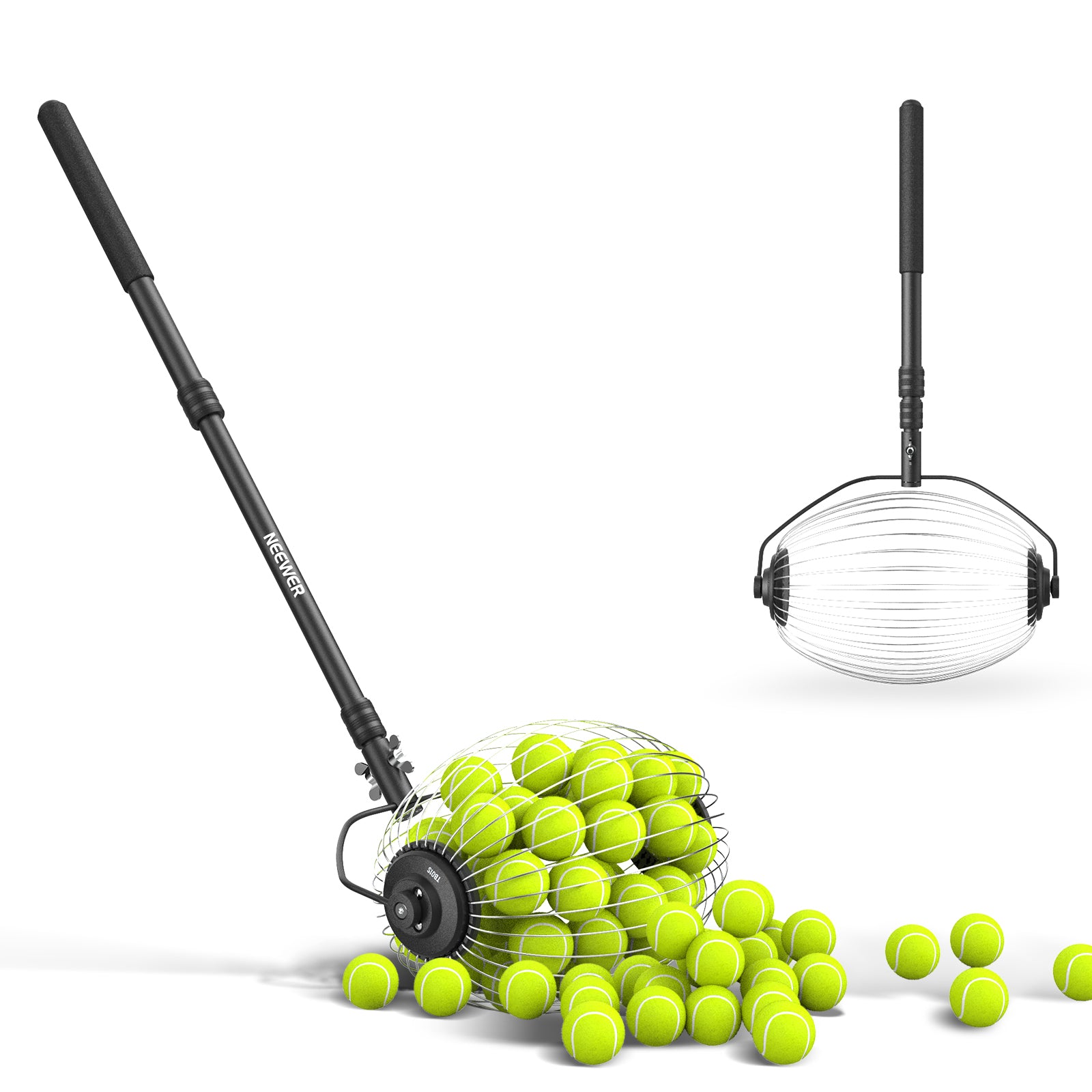 - Adjustable Height for Optimal Comfort- The telescopic handle allows you to adjust the tennis ball collector's height between 30"-58"/77-148cm to accommodate users of different heights, with the end covered in soft, nonslip foam for a comfortable grip. It ensures a pleasant experience for everyone, saving time and avoiding unwanted hassle, so you can focus more on your practice
