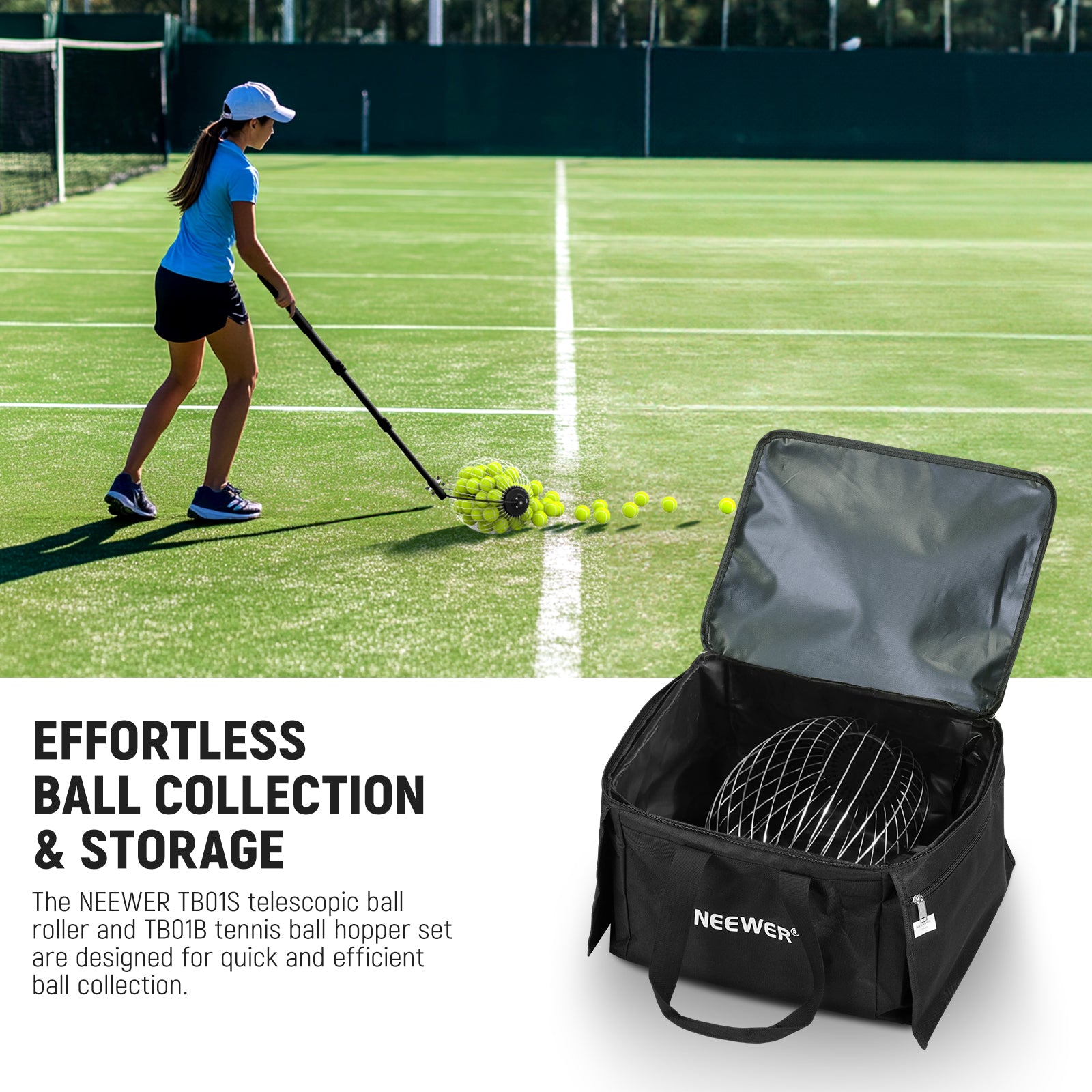- Quick Setup & High Portability- Our tennis ball rolling retriever supports easy setup & fast disassembly in one minute by screw mounting! When not in use, dismantle the handle and retract it to the minimal length, so that you can fit it into the portable carry bag or your trunk for convenient transport