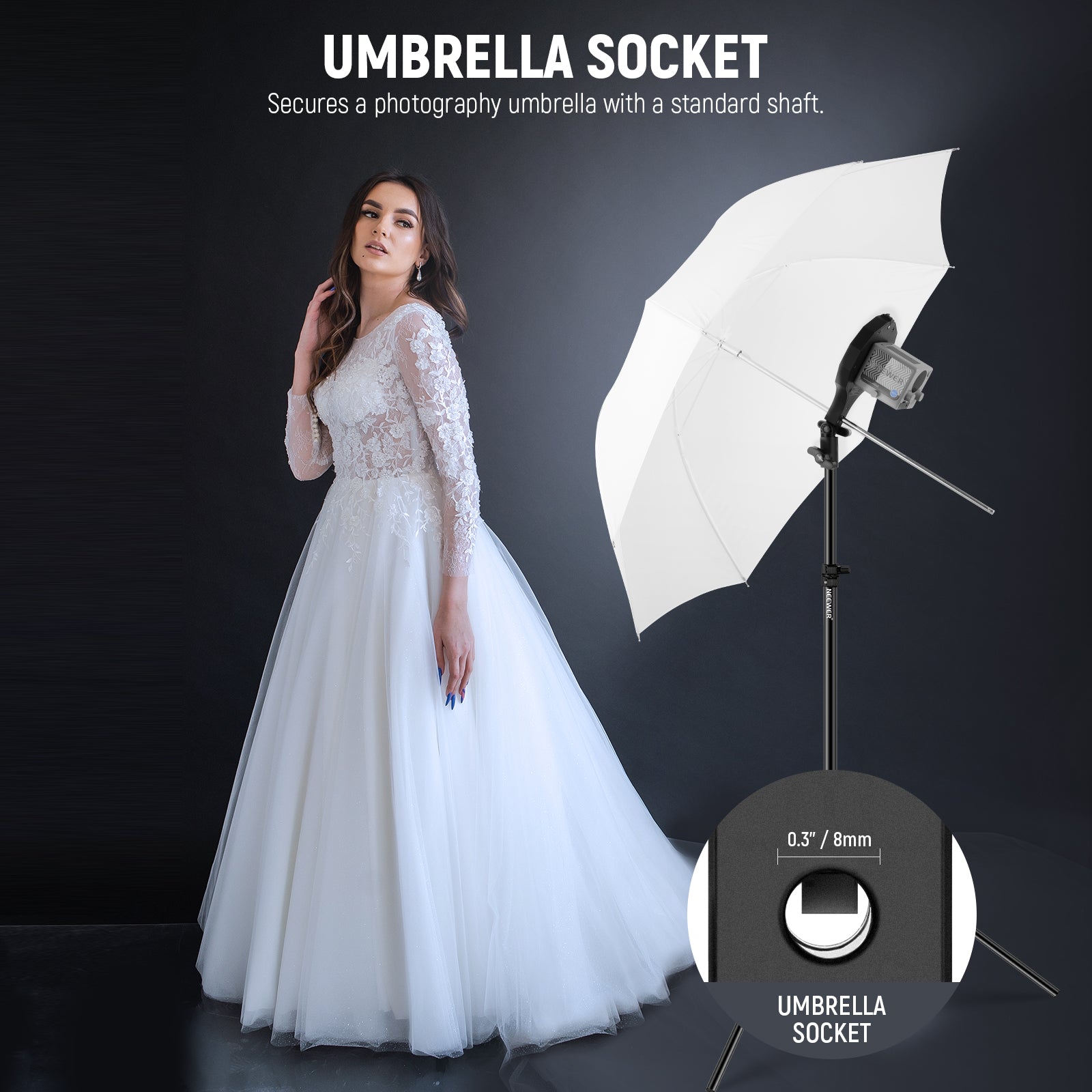 - 5/8" Light Stand Mount Adapter- The 5/8" receiver with a locking knob can securely attach to most light stands and enable 180° tilt for flexible angle adjustment