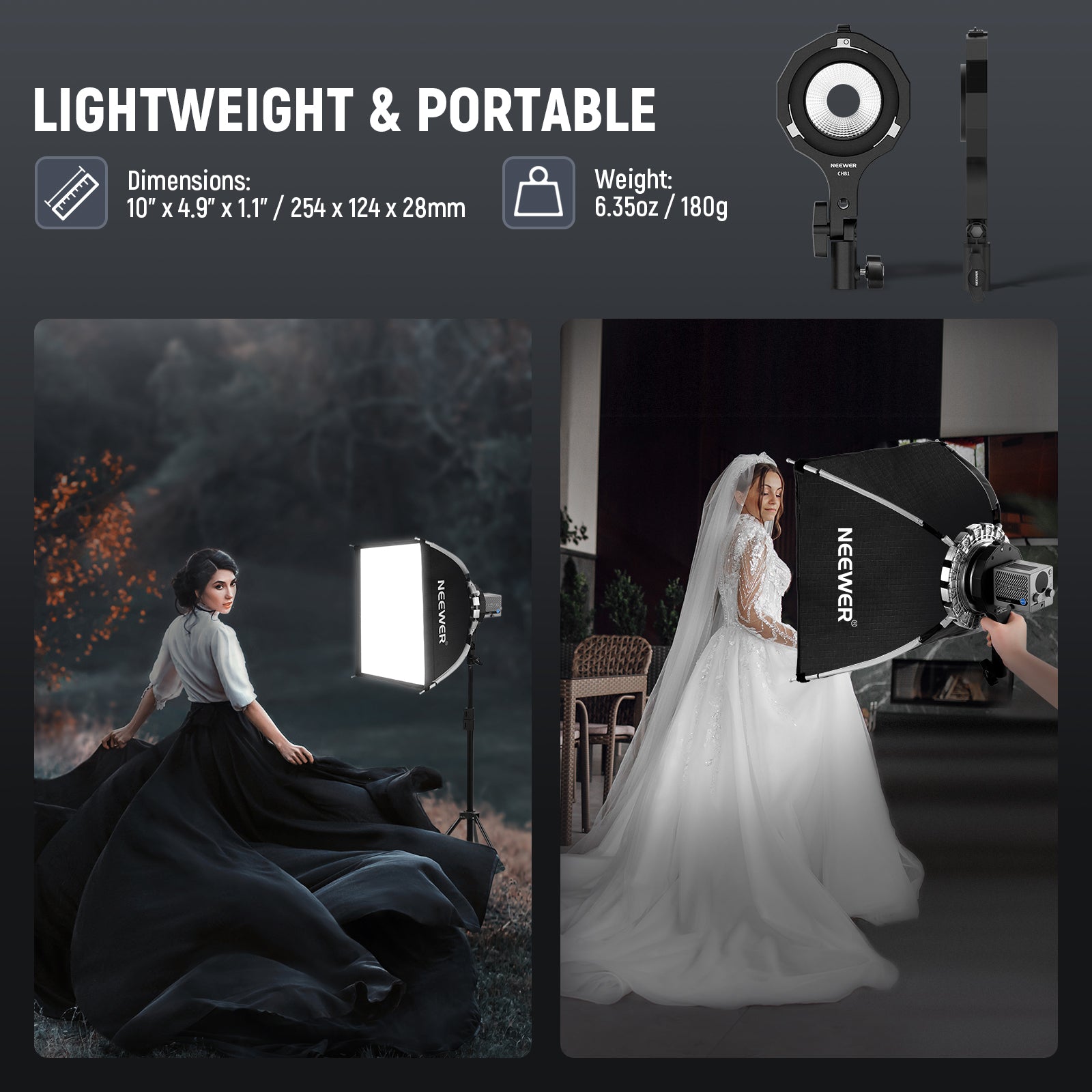 - Compact & Robust Construction- Solidly engineered to support a light shaper of up to 3.3lb/1.5kg, this mount adapter bracket is also compact (10"x4.9"x1.1"/254x124x28mm) and lightweight (6.35oz/180g) for ease of transportation