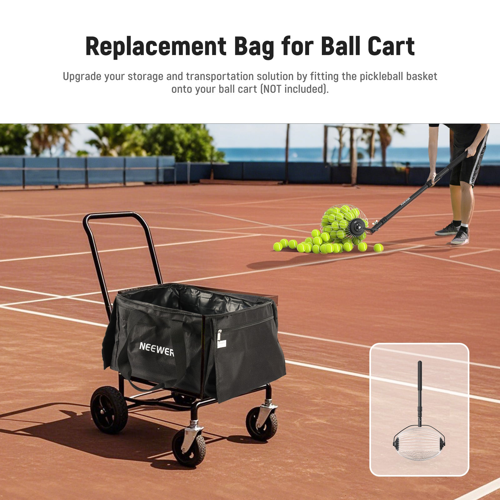 - Designed for TB01S Tennis Ball Picker- The TB01B tennis ball basket seamlessly accommodate the NEEWER TB01S telescopic ball collector roller, featuring two adhesive fasteners inside to securely hold the roller in place, making it easy to carry. It also serves as a perfect ball collection bag, pairing with the roller picker upper machine to maximize loading efficiency. NOTE: ONLY the carry bag is included