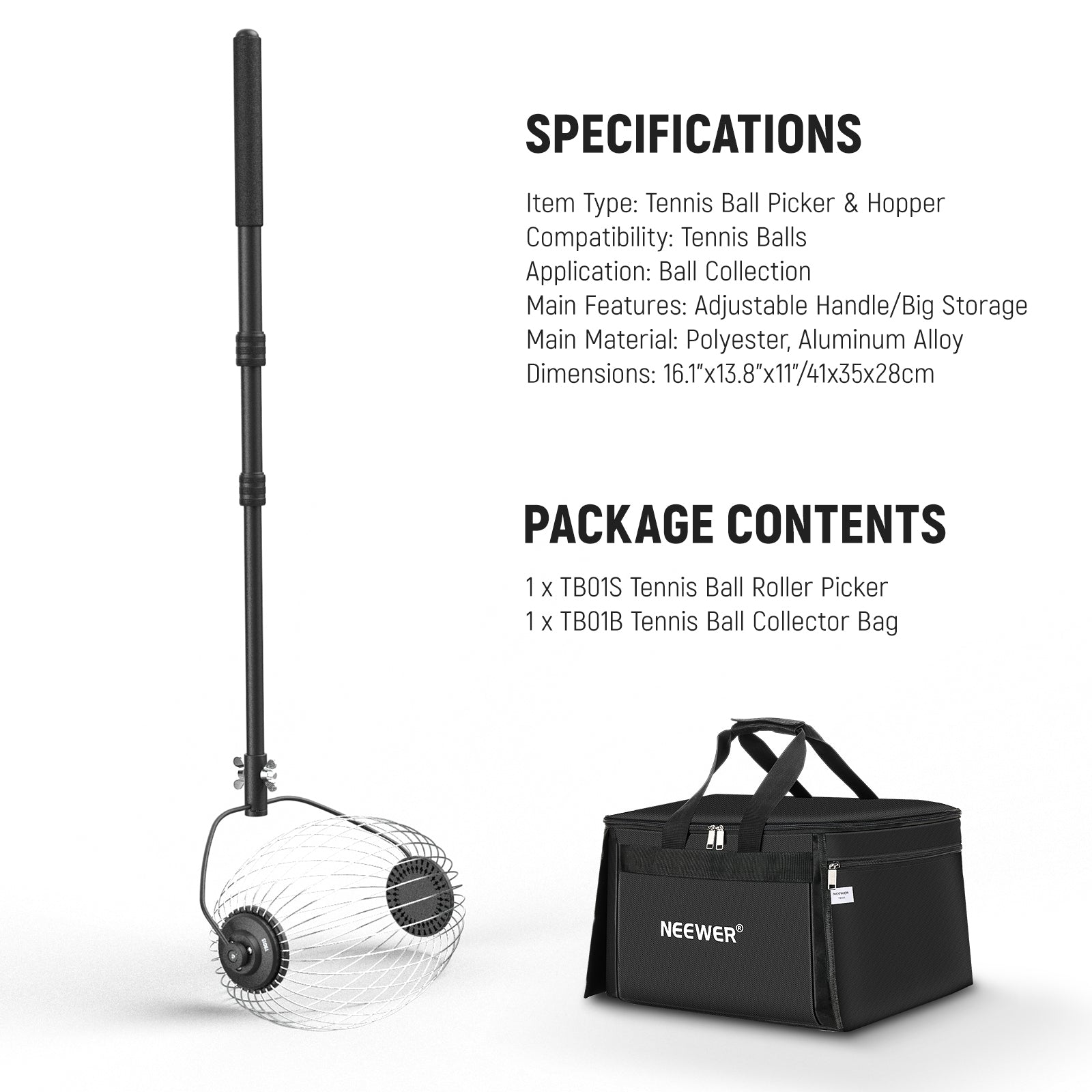 - Quick Setup & High Portability- Our tennis ball rolling retriever supports easy setup & fast disassembly in one minute by screw mounting! When not in use, dismantle the handle and retract it to the minimal length, so that you can fit it into the portable carry bag or your trunk for convenient transport