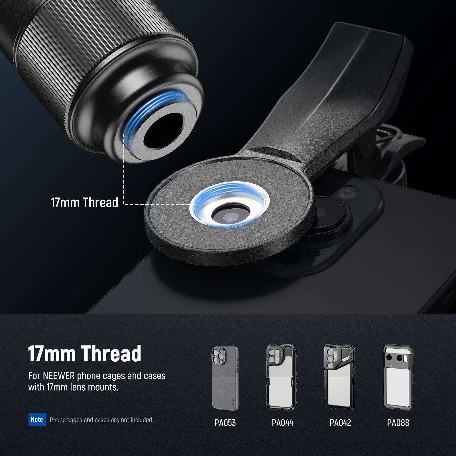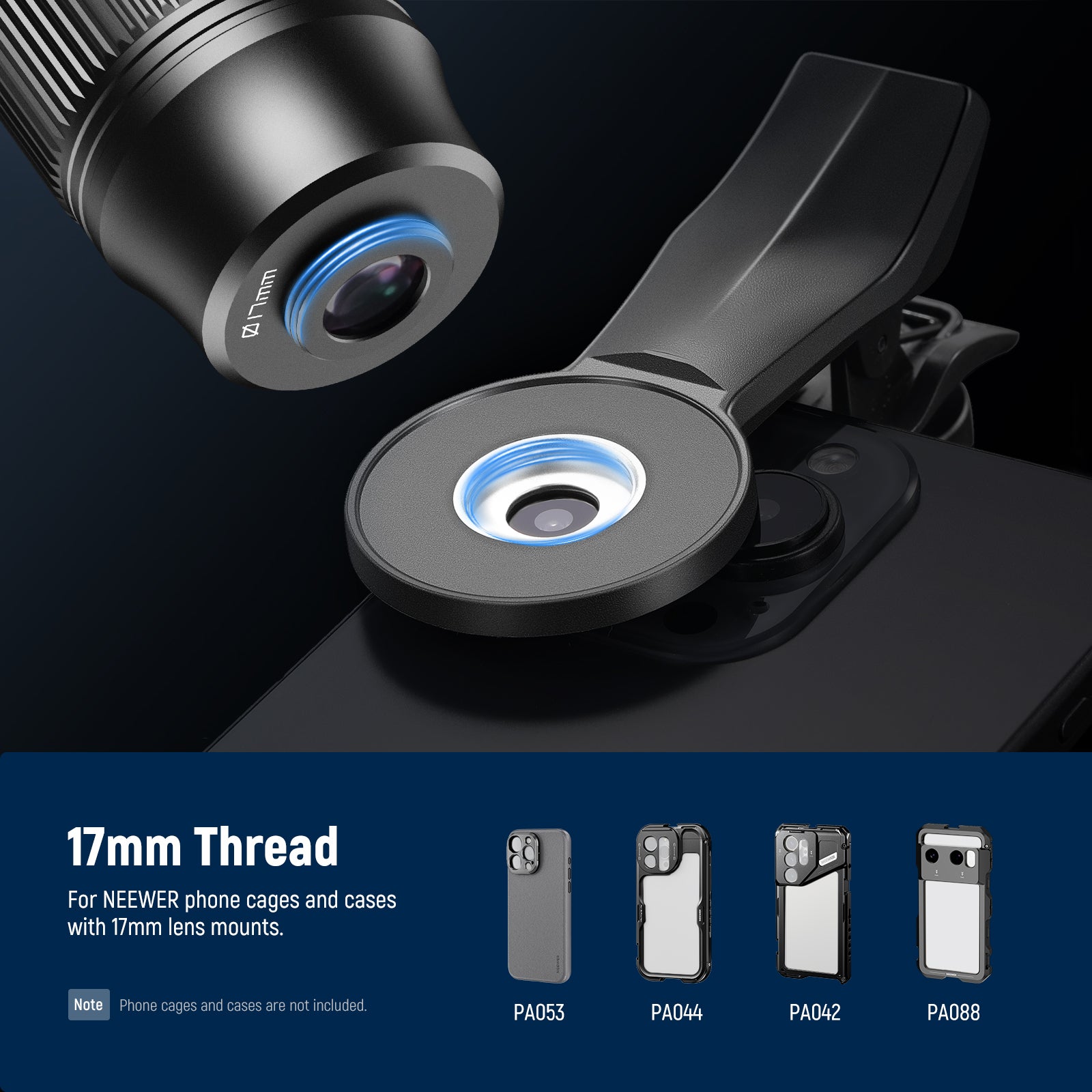 NEEWER phone lenses are crafted with a durable aluminum alloy frame that resists rust and scratches. These lenses ensure accurate color reproduction for sharp and vibrant videos and photographs. Our collection includes macro probe lenses, wide-angle phone lenses, and more. Choose a professional phone lens to elevate your mobile photography.