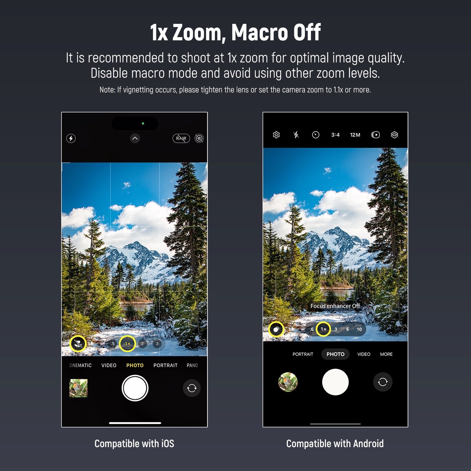 - Lightweight & Sturdy Build- This lightweight lens attachment boasts an aluminum alloy shell. Note: Before use, please clean the main and adjacent cameras. If vignetting occurs, please tighten the lens and set the camera zoom to 1.1x or more