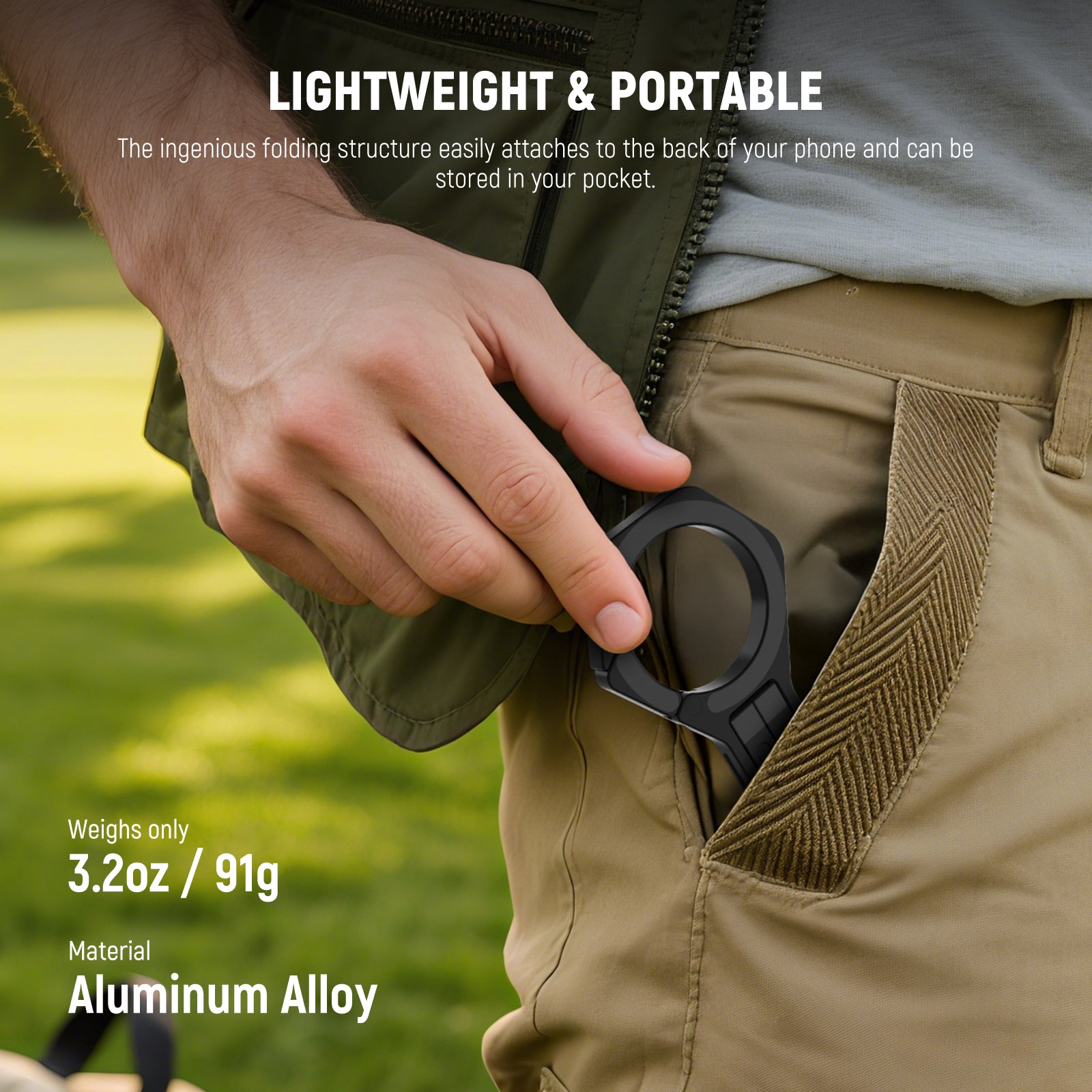 • Carabiner Style Magnetic Phone Mount- The magnetic cellphone desk tripod stand holder features a magnetic design that securely holds your smartphones, ensuring stability during shooting, reducing the risk of accidental drops. The unique carabiner style design allows for easy attachment to and quick release from your backpack belt, providing convenient access whenever needed