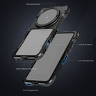 - 1 Click Installation & Full Access- Quickly open and lock via side button and have full access to camera, buttons, and charging port. Slide in the filter adapter and lens backplate, then close the top bracket to secure even heavy filters and lenses