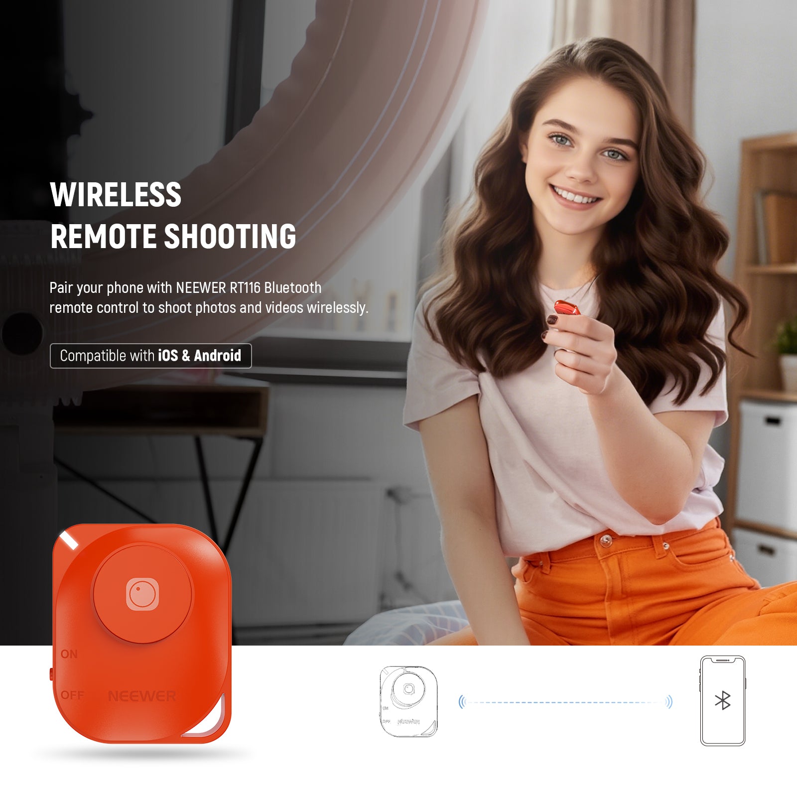 • Adjustable Phone Holder- A flexible phone mount secures your phone at the center of the light, delivering direct, diffused continuous lighting for optimal photo, video recording quality, supporting vertical and horizontal overhead filming. This tall standing ring light is compatible with iPhone 16 15 Pro Max Plus Samsung S25 S24 Ultra, etc, as content creator essential gear as phone camera photography videography accessories. Includes a Bluetooth wireless remote for convenient shutter control