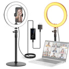 - Adjustable Desk Stand & 360° Lighting Angle- Our halo ring light for phones contains a desktop stand ranging 11"-18"/29-45cm and a 360° ball head. Easily tailor a desired height and optimal lighting angle. Versatile as makeup artists light, video recording light for YouTube Tiktok social media, streamer streaming light, webcam light for video conference, photo light for photography, video podcast light, Zoom call lighting for computer monitor, laptop light for video conferencing, etc.