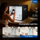 • Bright & Dimmable Mini Photo Booth- The product photography light box features 120 bi color LEDs with 5800lux/0.25m, 0-100% dimming, and CRI95+ for accurate colors. Essential lightbox & must have accessories for content creators, influencers & small business