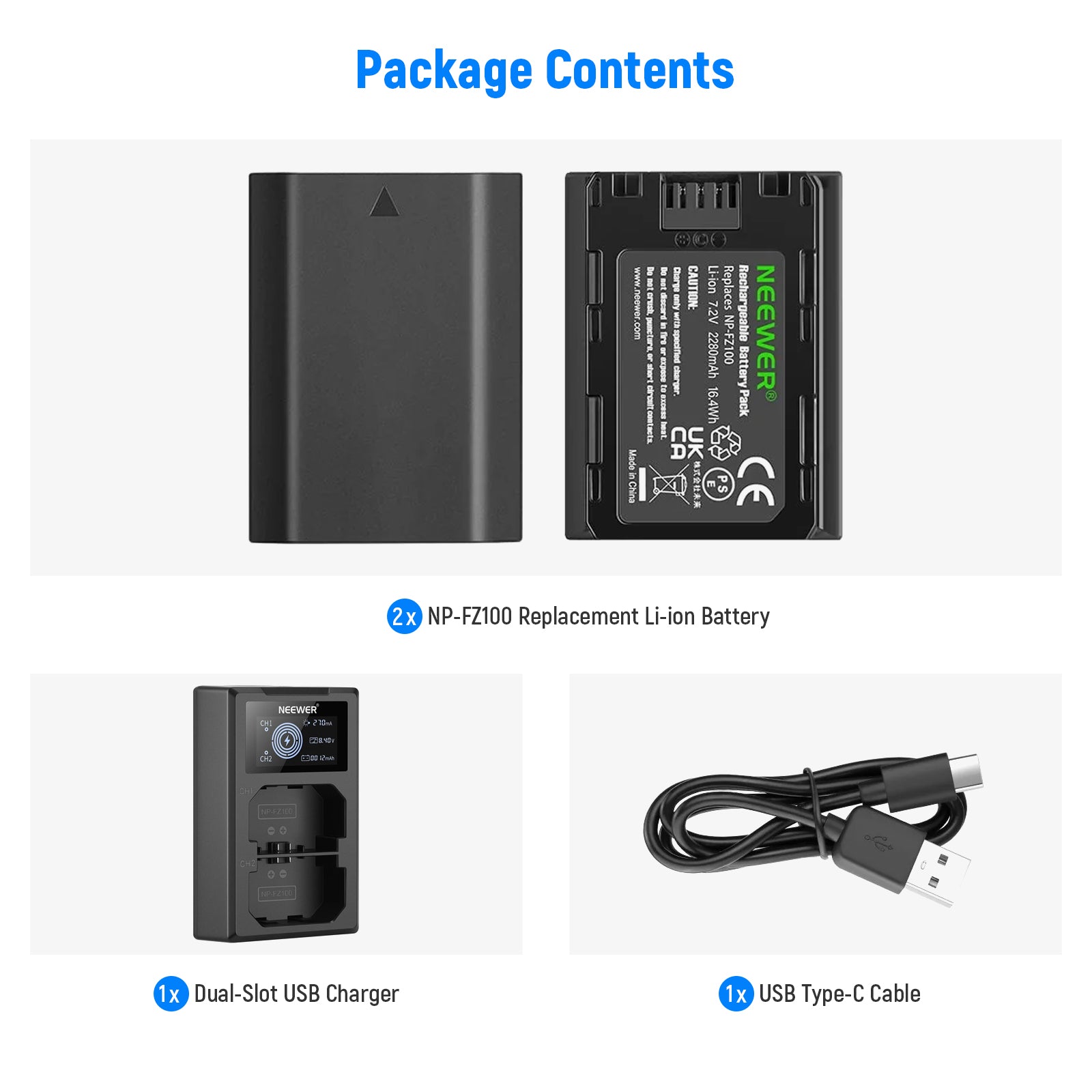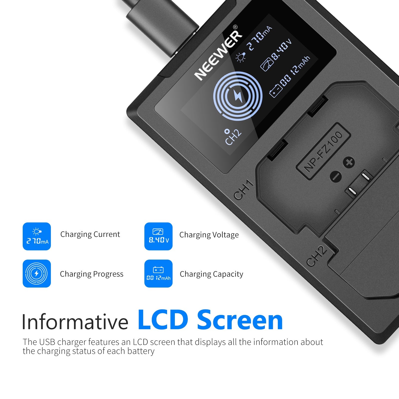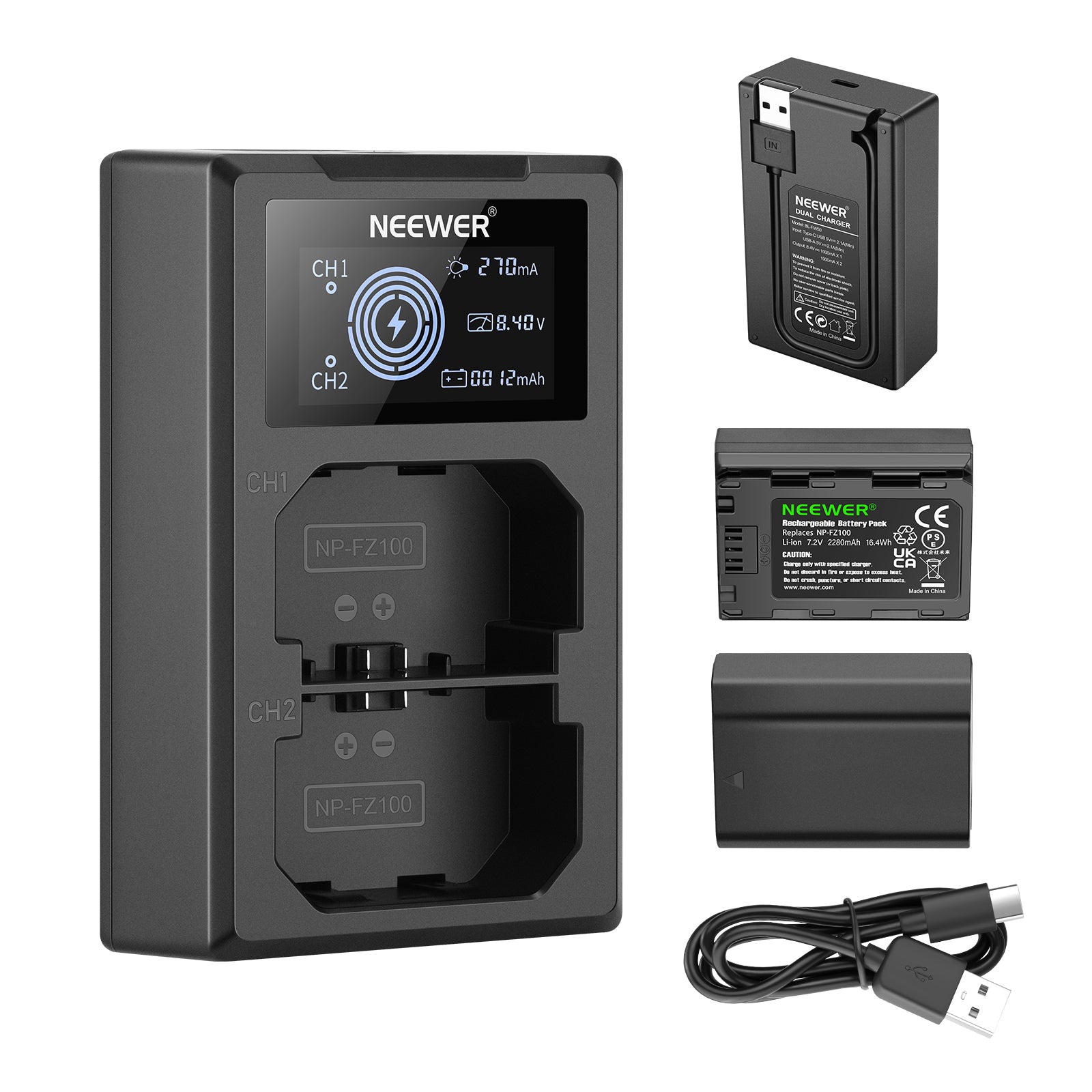 NEEWER Upgraded NP-FZ100 Sony Replacement Battery Charger Set