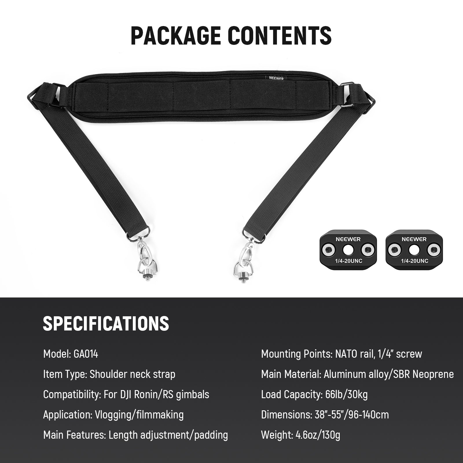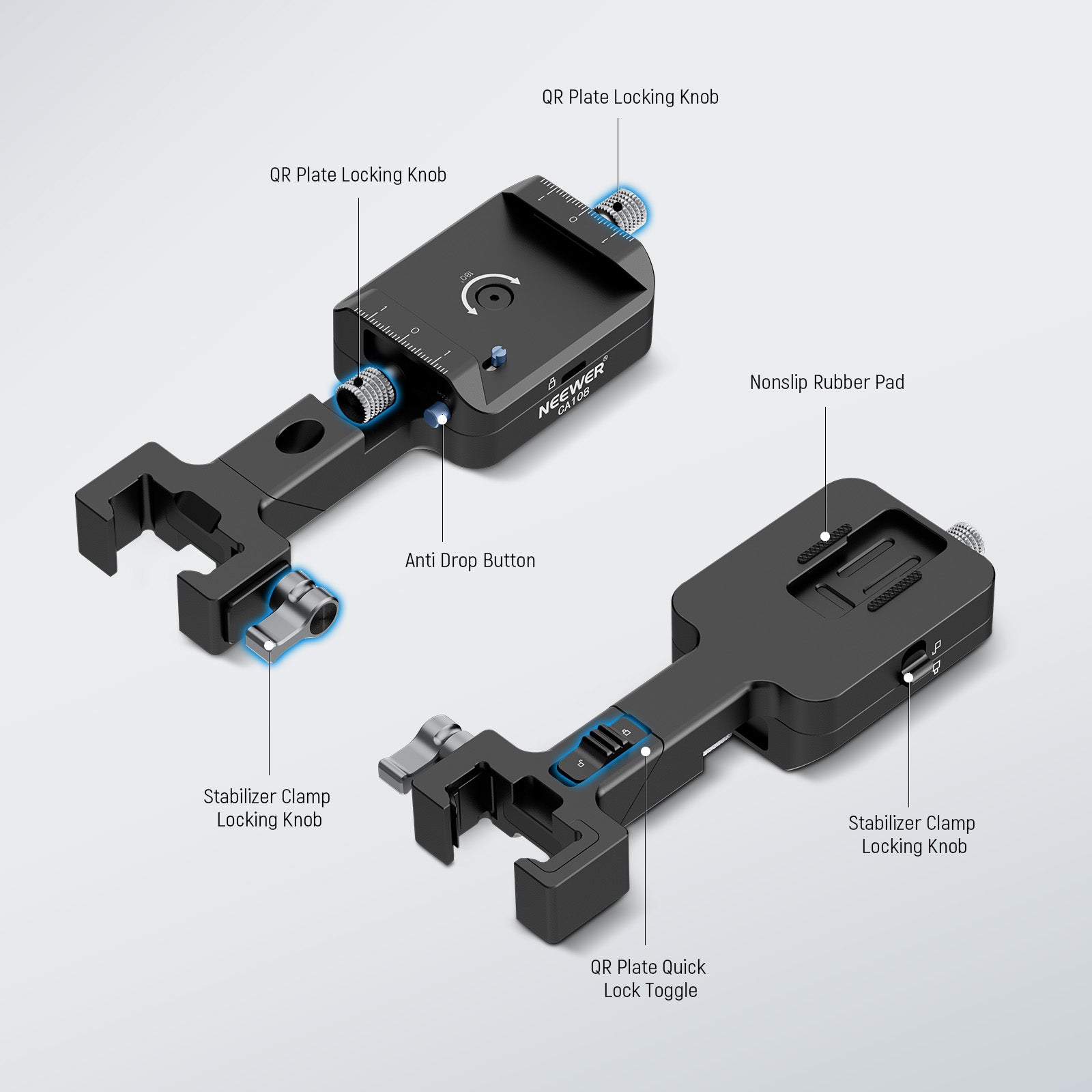 NEEWER offers camera stabilizer rigs to help you enhance stability and precise control over the camera. Our collection includes stabilizer mounts, neck straps, dual handgrips, and more. These camera stabilizer rigs can help you reduce the burden of shooting long videos outdoors. Choose professional and suitable camera stabilizer rigs for photography.