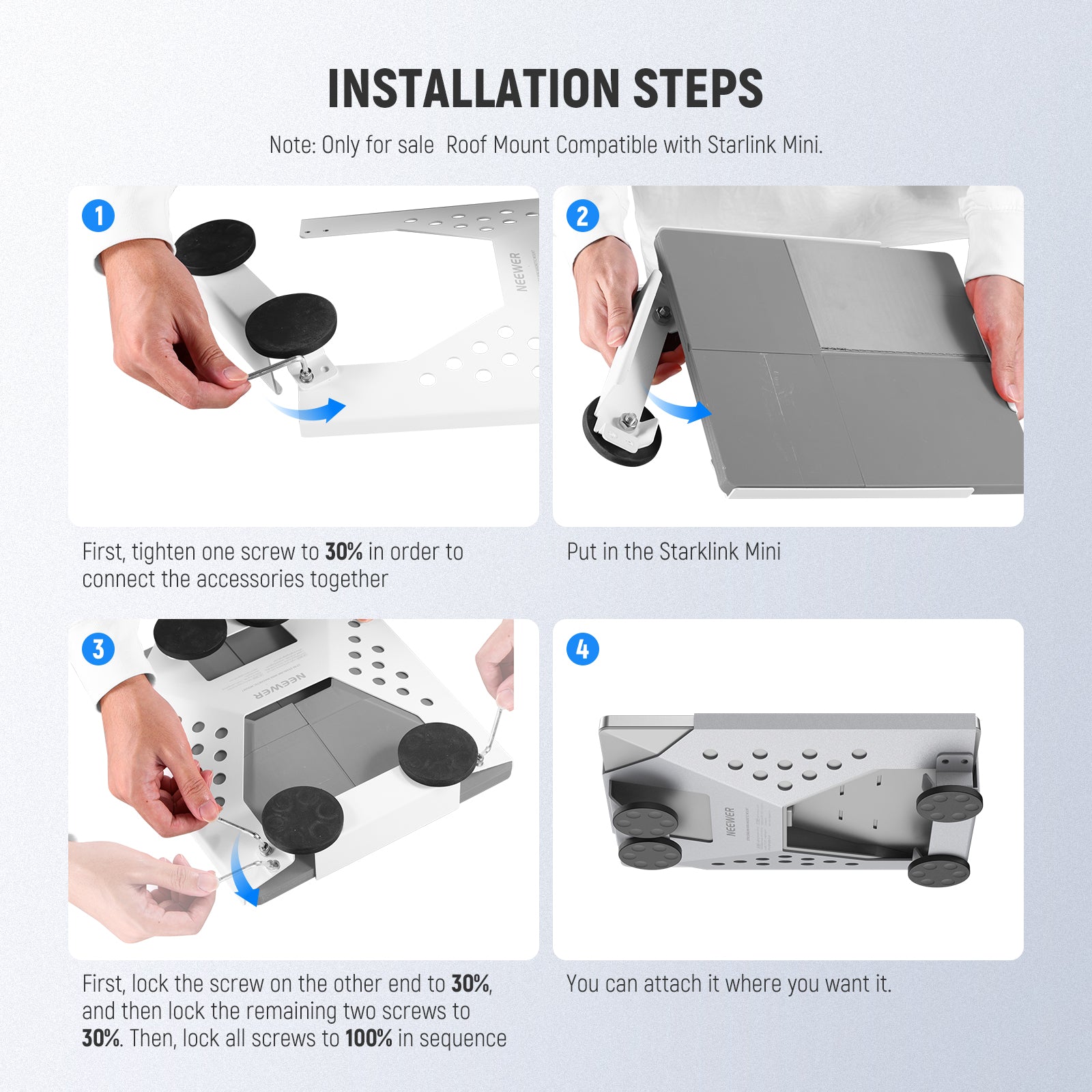 NEEWER offers a variety of Starlink Mini accessories, including tripods, travel bags, power cables, and more. Designed to improve portability, ease of setup, and overall performance, these accessories help you get the most out of your Starlink Mini at home, on the road, or outdoors. Durable and convenient, they’re built to support every deployment. Browse our collection to find the perfect accessories for your setup.