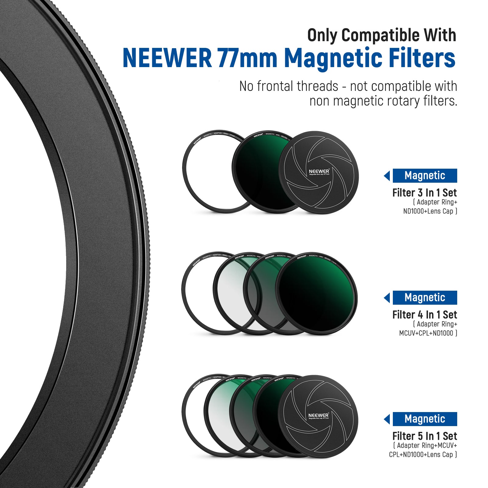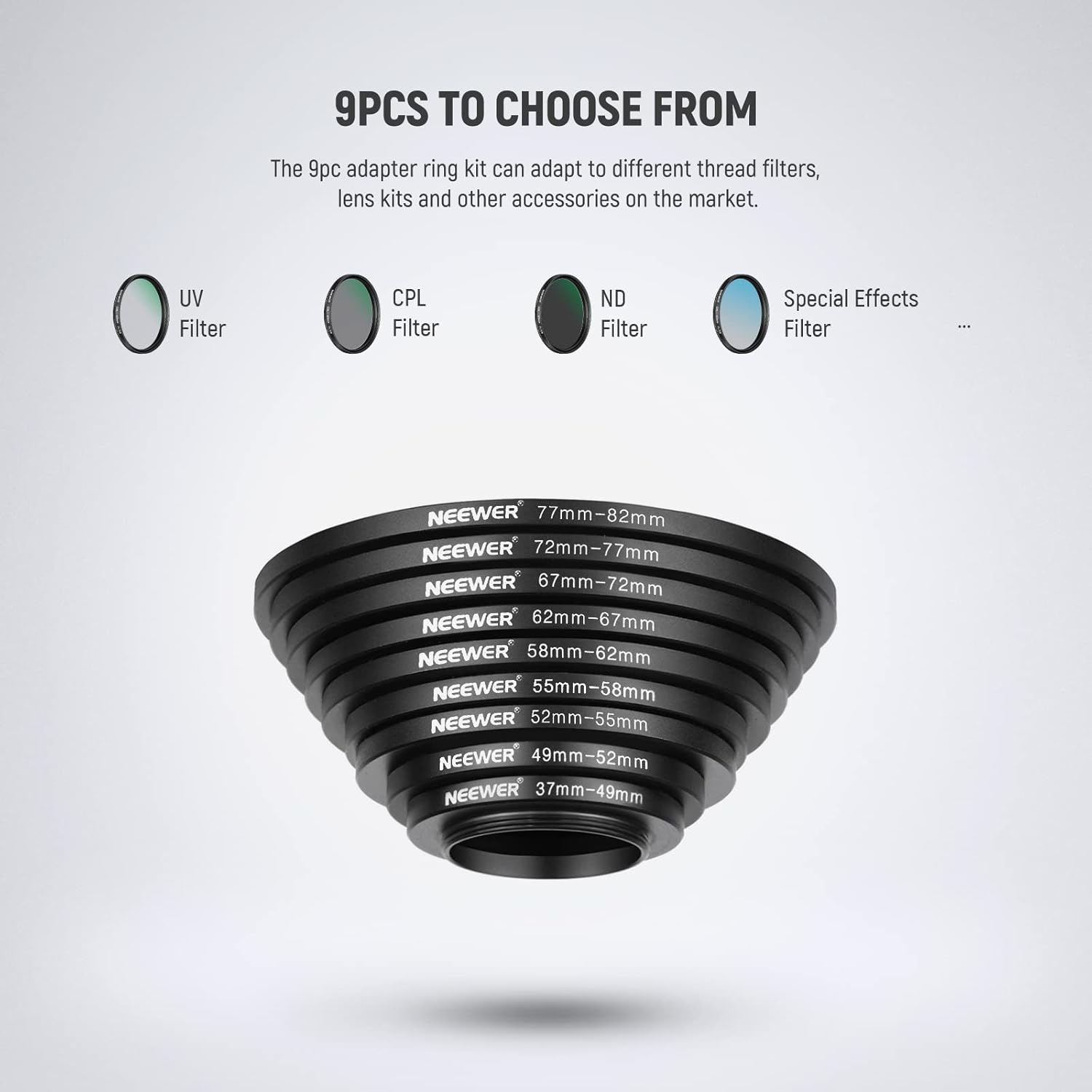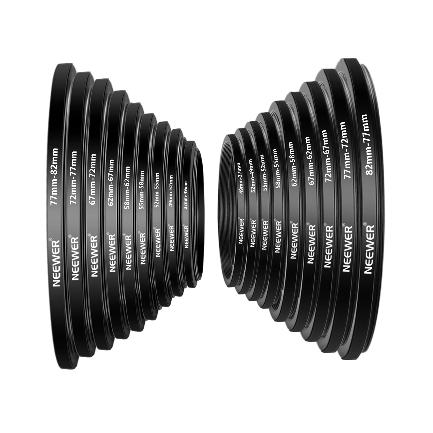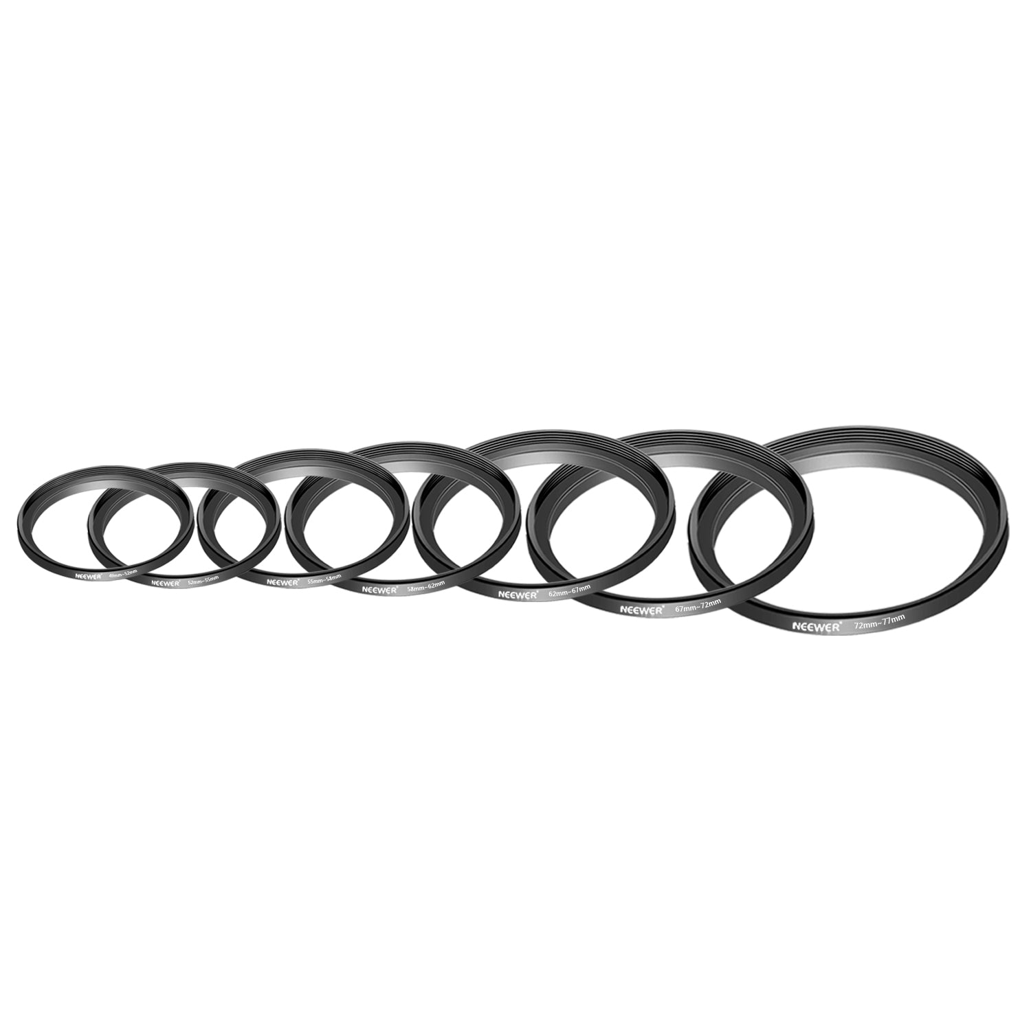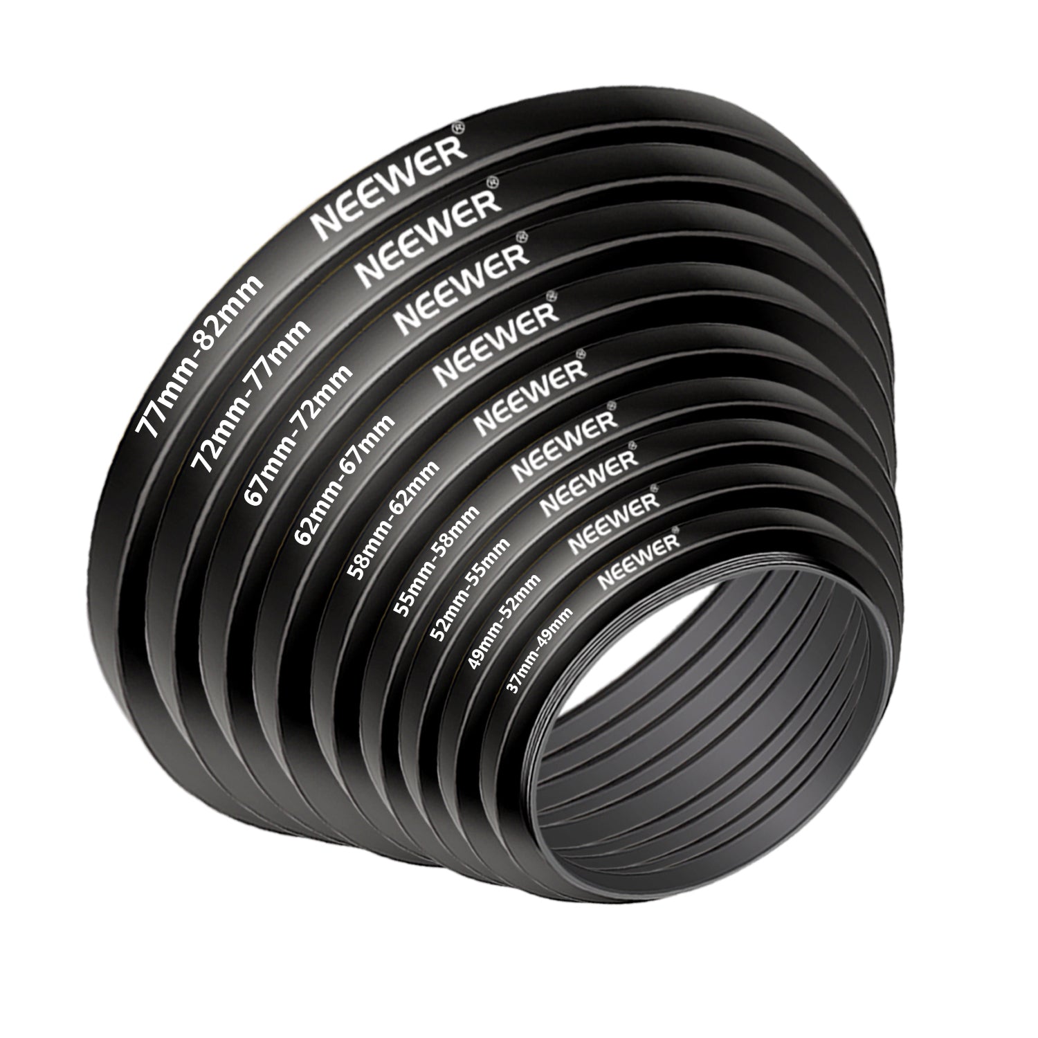 NEEWER offers step-up rings and step-down ring adapters, allowing lenses to be compatible with various filters and accessories of different sizes. These stepping rings are crafted from premium-grade aluminum with precision manufacturing to ensure smooth and secure mounting. They are extremely durable yet lightweight, featuring a polished, anodized matte surface for a sleek and professional finish.